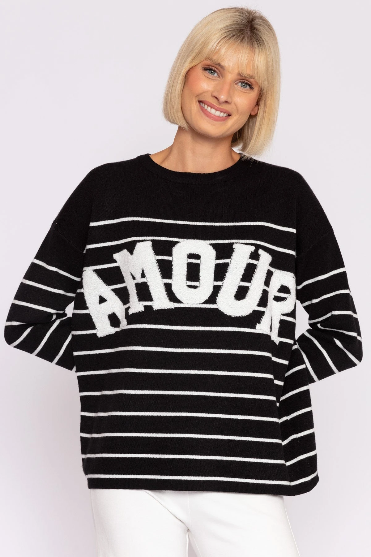 Round neck knit in black by J’aime la Vie. Delightfully soft and comfortable for every day.