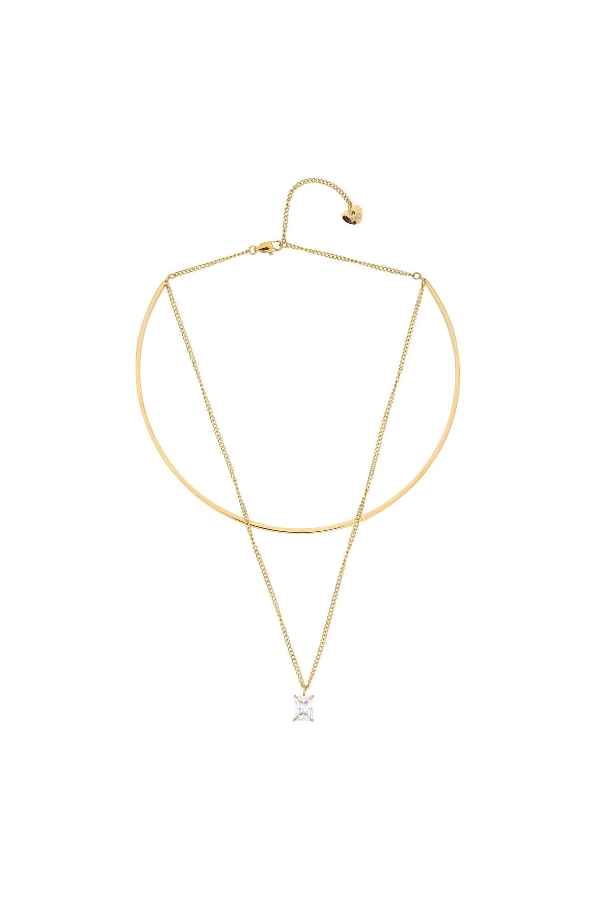 Elegant choker style necklace with clear CZ drop. Gold plating. Length 42 + 5cm extension.