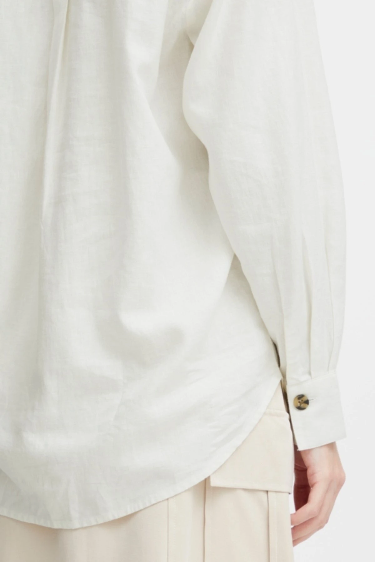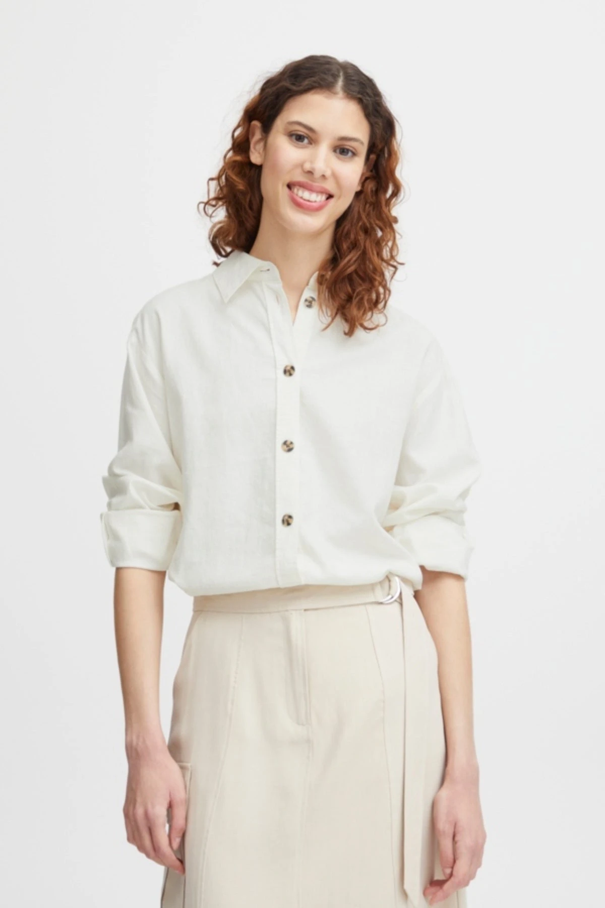 Upgrade your summer wardrobe with the Byfalakka White Shirt! Made with a linen mix, this shirt provides breathability and comfort in the warm weather. A stylish and functional addition to your wardrobe.Â