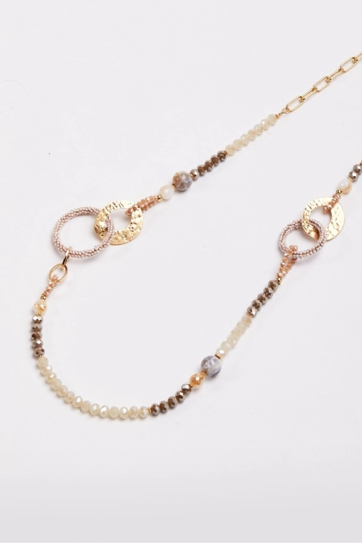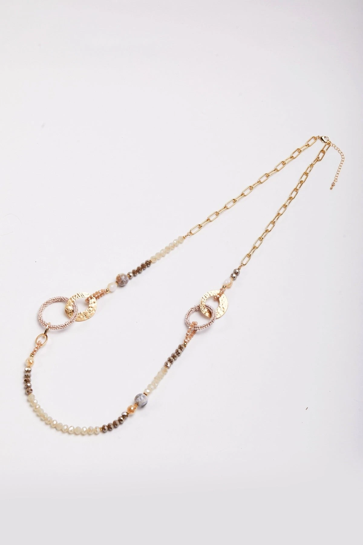Beaded Gold Link Necklace by Soul Jewellery. This ladies long beaded necklace is the perfect addition for layering, it effortlessly dresses up a casual look or enhances any occasion wear.