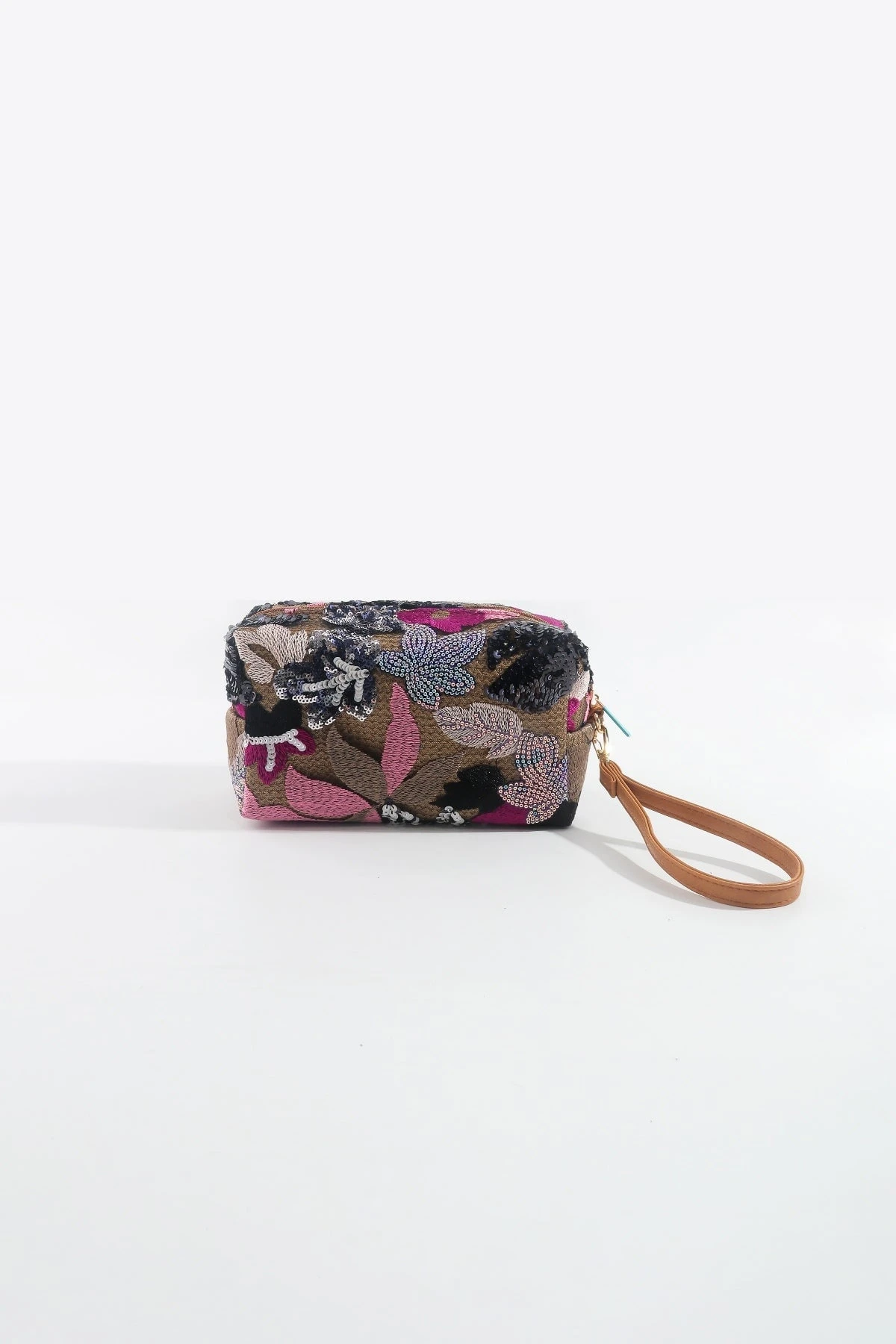 Combine fashion and functionality with this Pink Embellished Make up bag. Perfect for travel, it features a charming pink design, adding a touch of elegance.