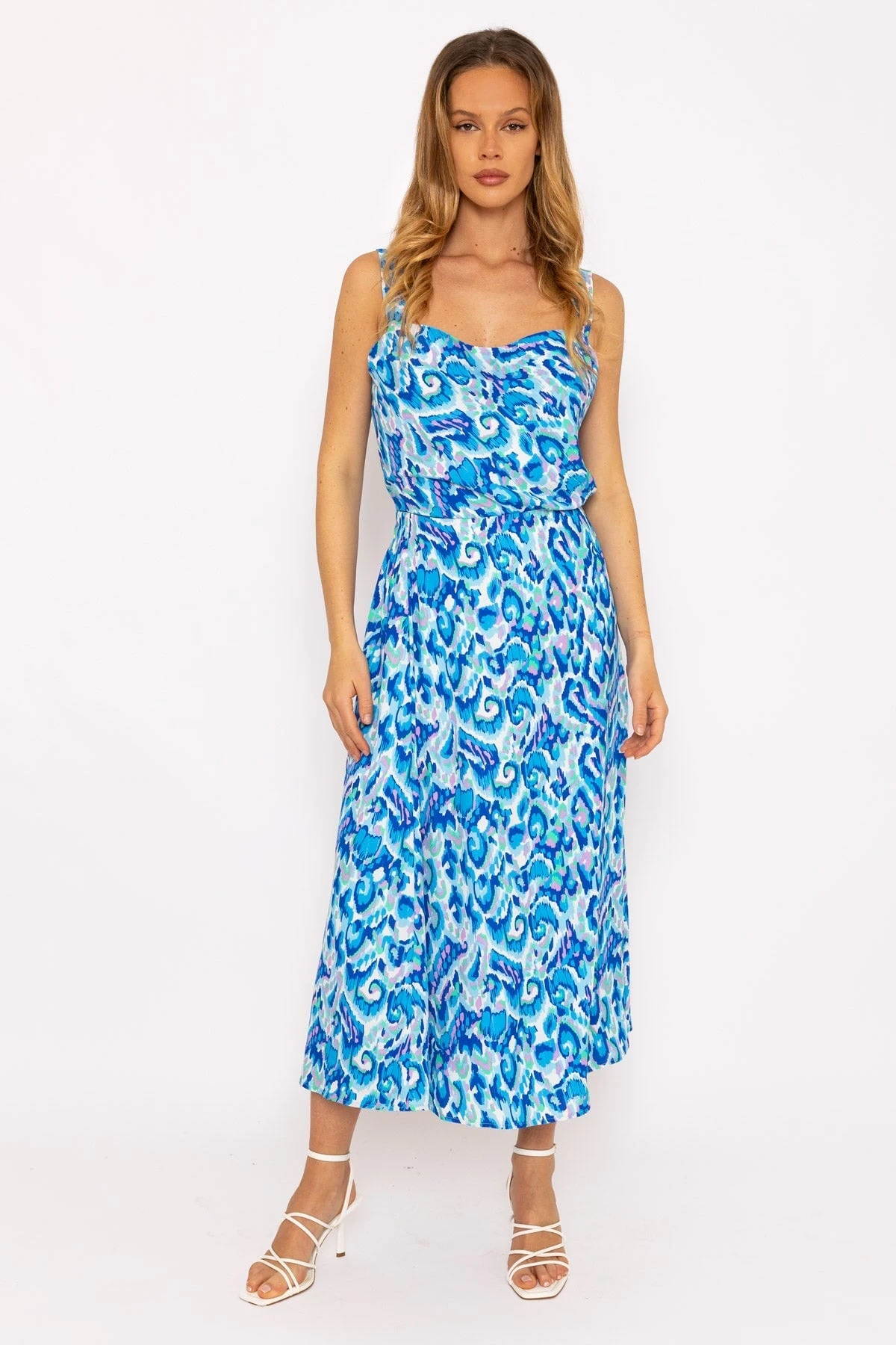 Blue printed midi skirt by Rowen Avenue. A perfect summer wardrobe addition. Match with a top for a complete look.