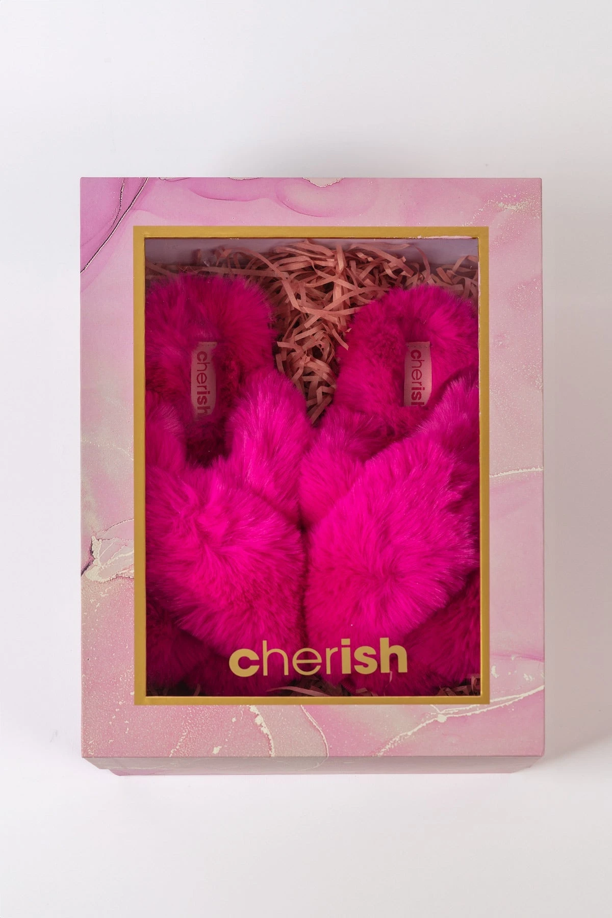 Boxed Faux Fur Quilted Slippers in Pink by Cherish Accessories.