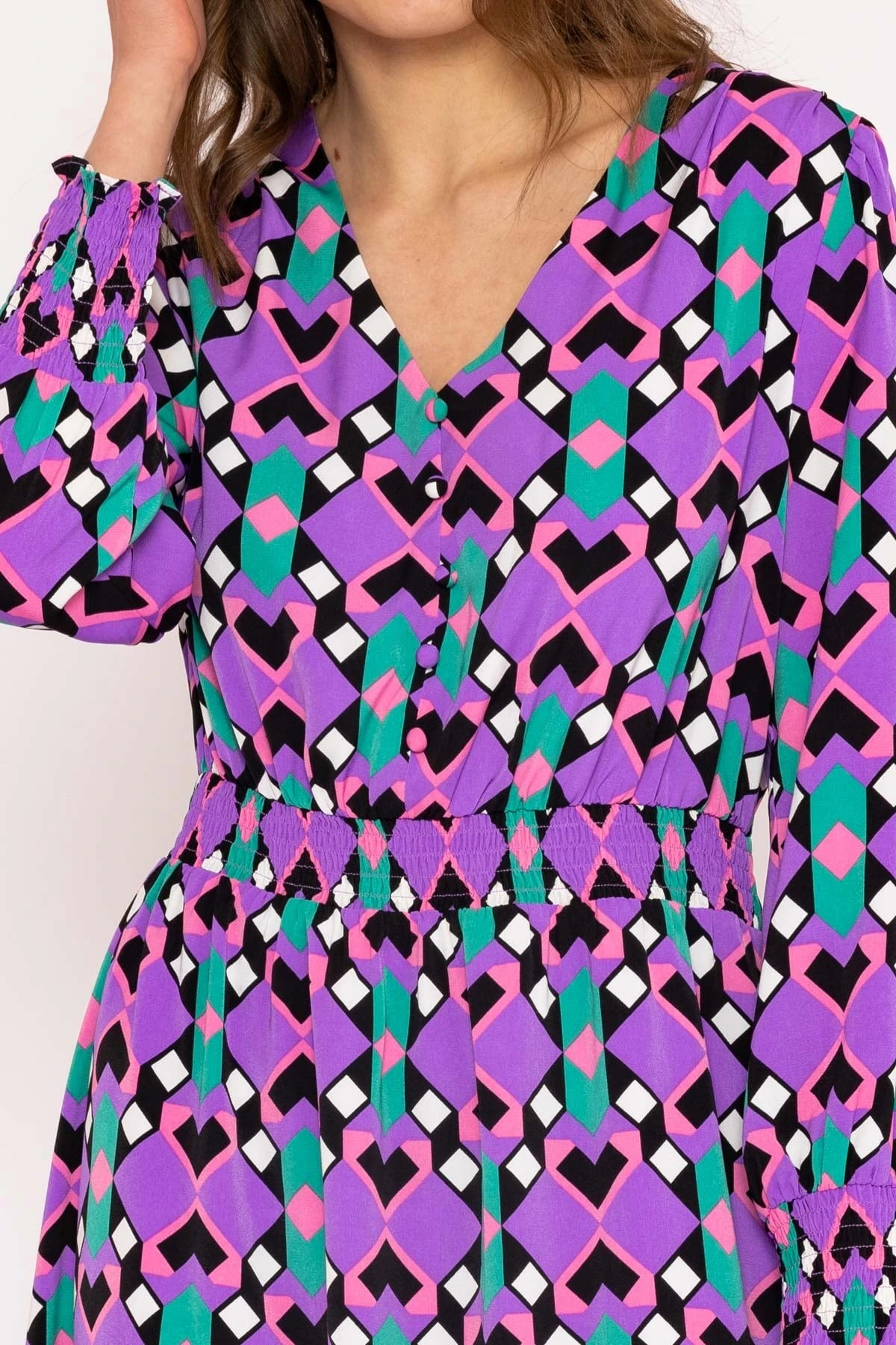 Long sleeved midi dress in lilac print by Rowen Avenue.