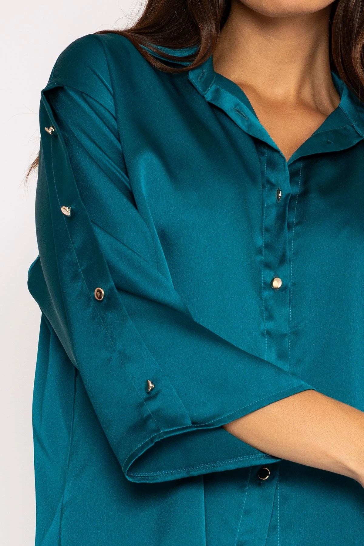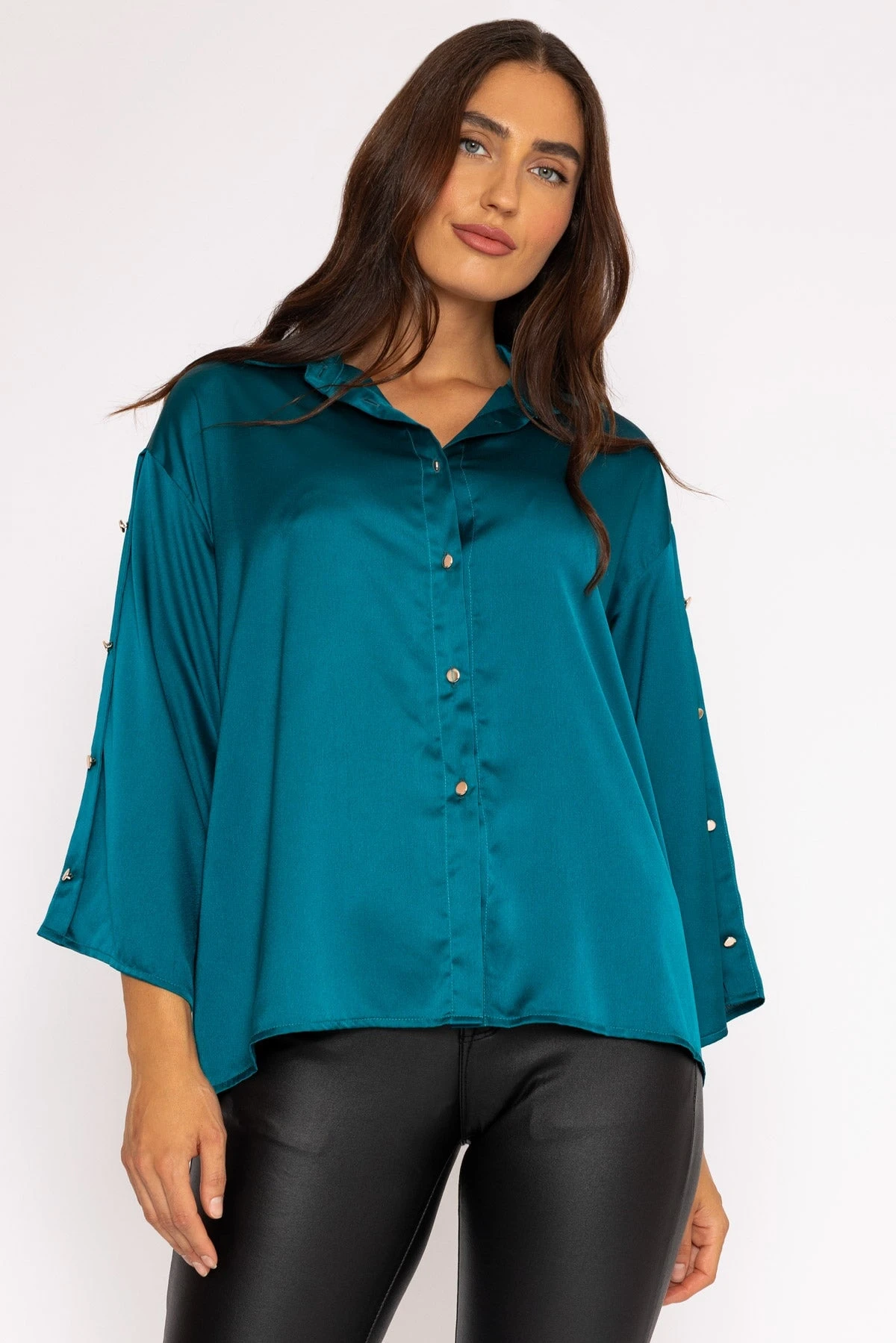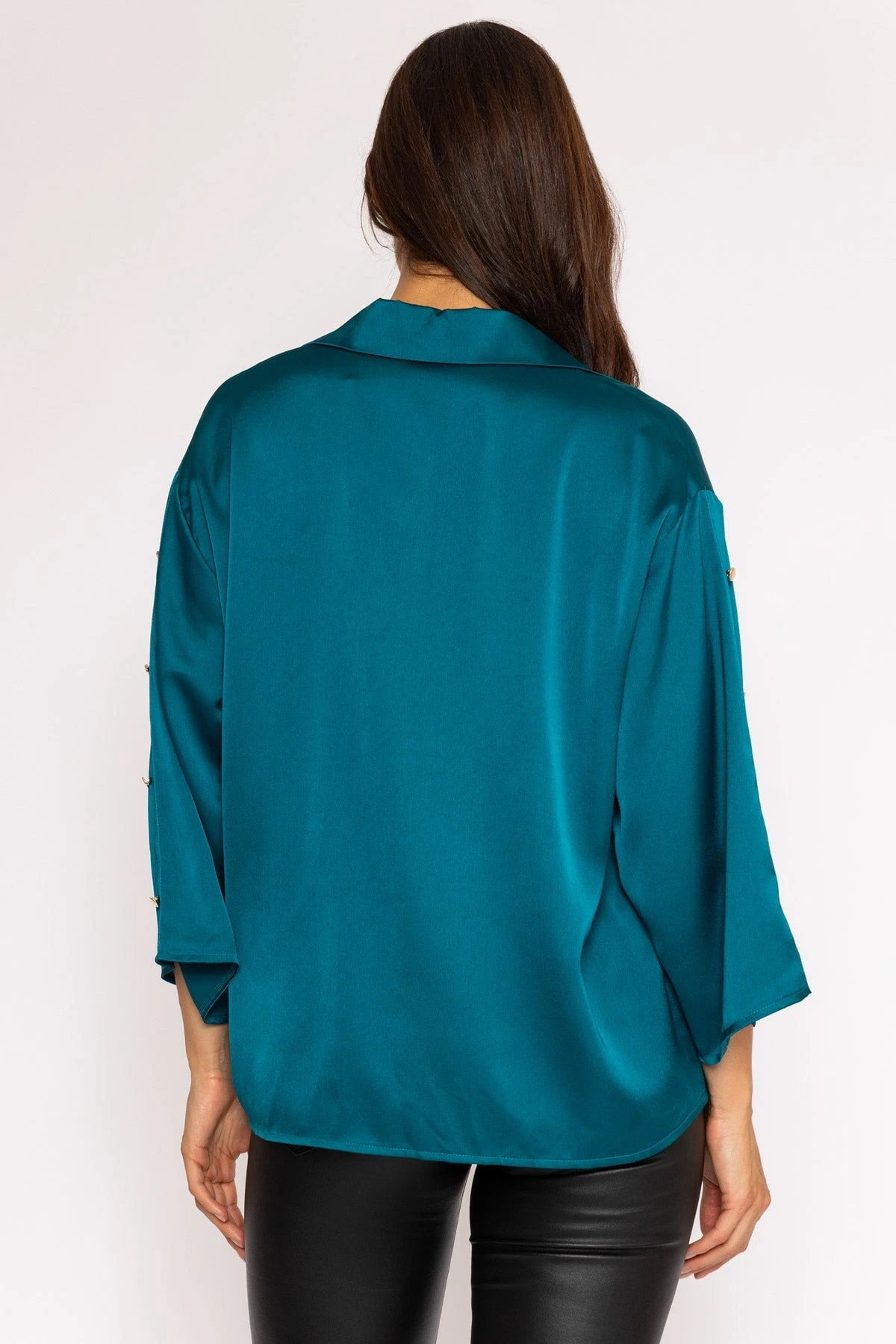 3/4 length sleeve shirt in teal by Pala D’oro. Comfortable and easy to wear.