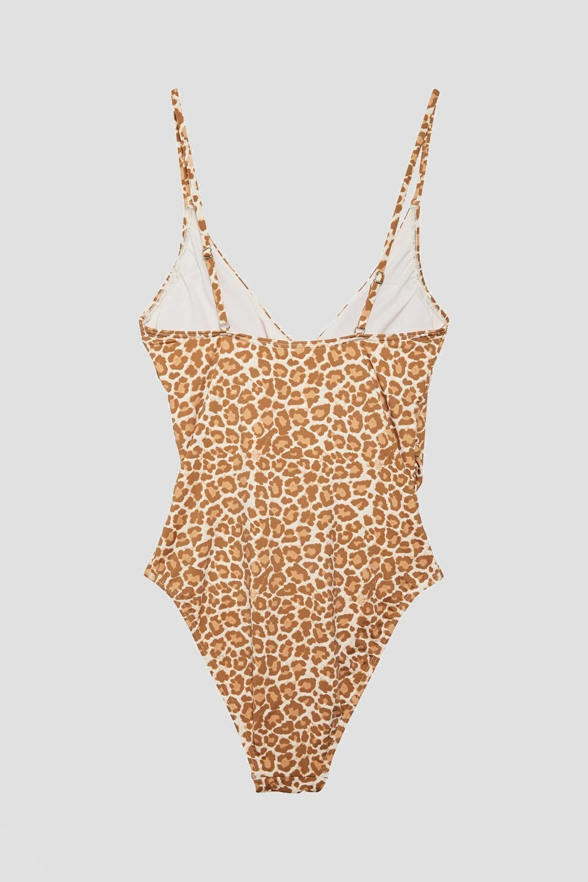 Celine Swimsuit in Birch, with padding, wrap detailing at the front and adjustable straps. The perfect swimsuit for a day at the beach or the pool.