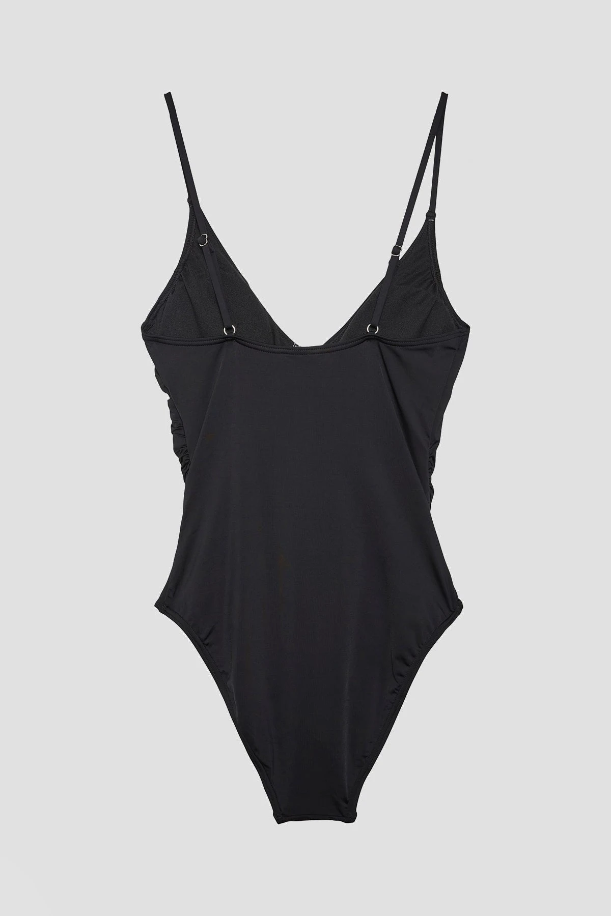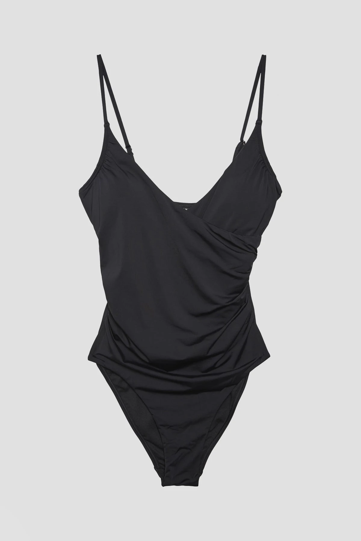 Celine Swimsuit in Black, with padding, wrap detailing at the front and adjustable straps. The perfect swimsuit for a day at the beach or the pool.