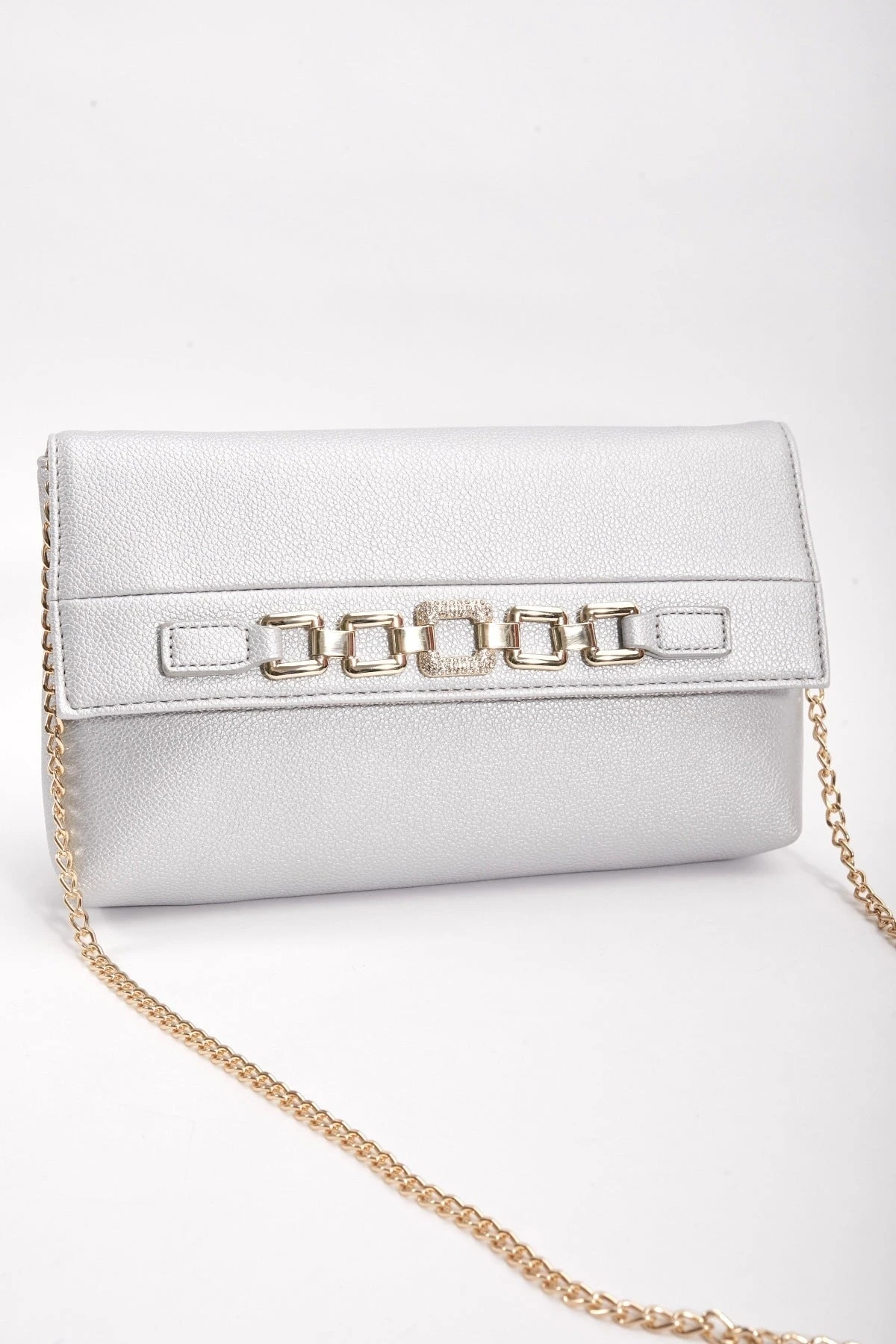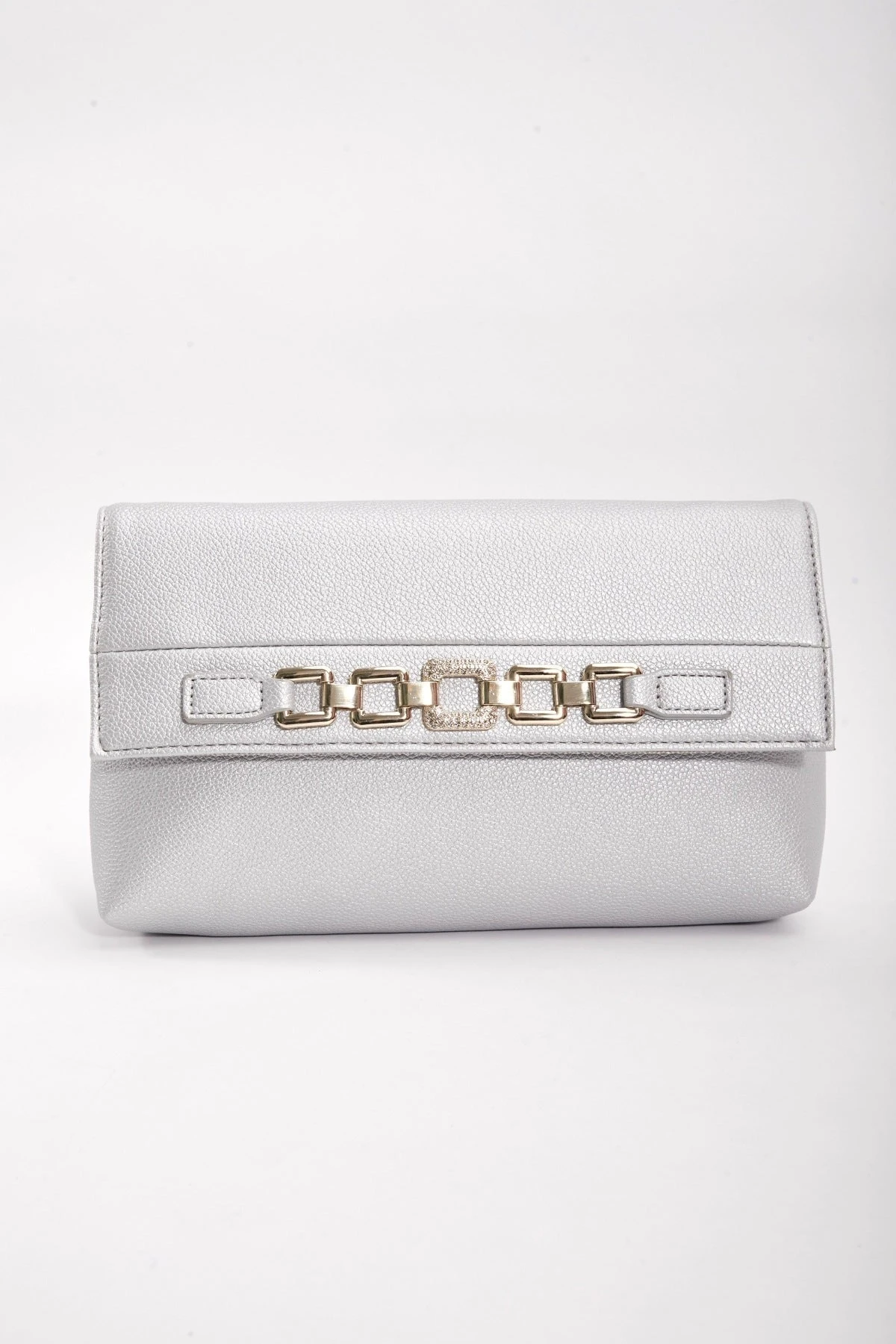 Chain Detail Clutch in Silver by Soul Accessories. For both style and function, this clutch bag features a versatile crossbody gold chain.