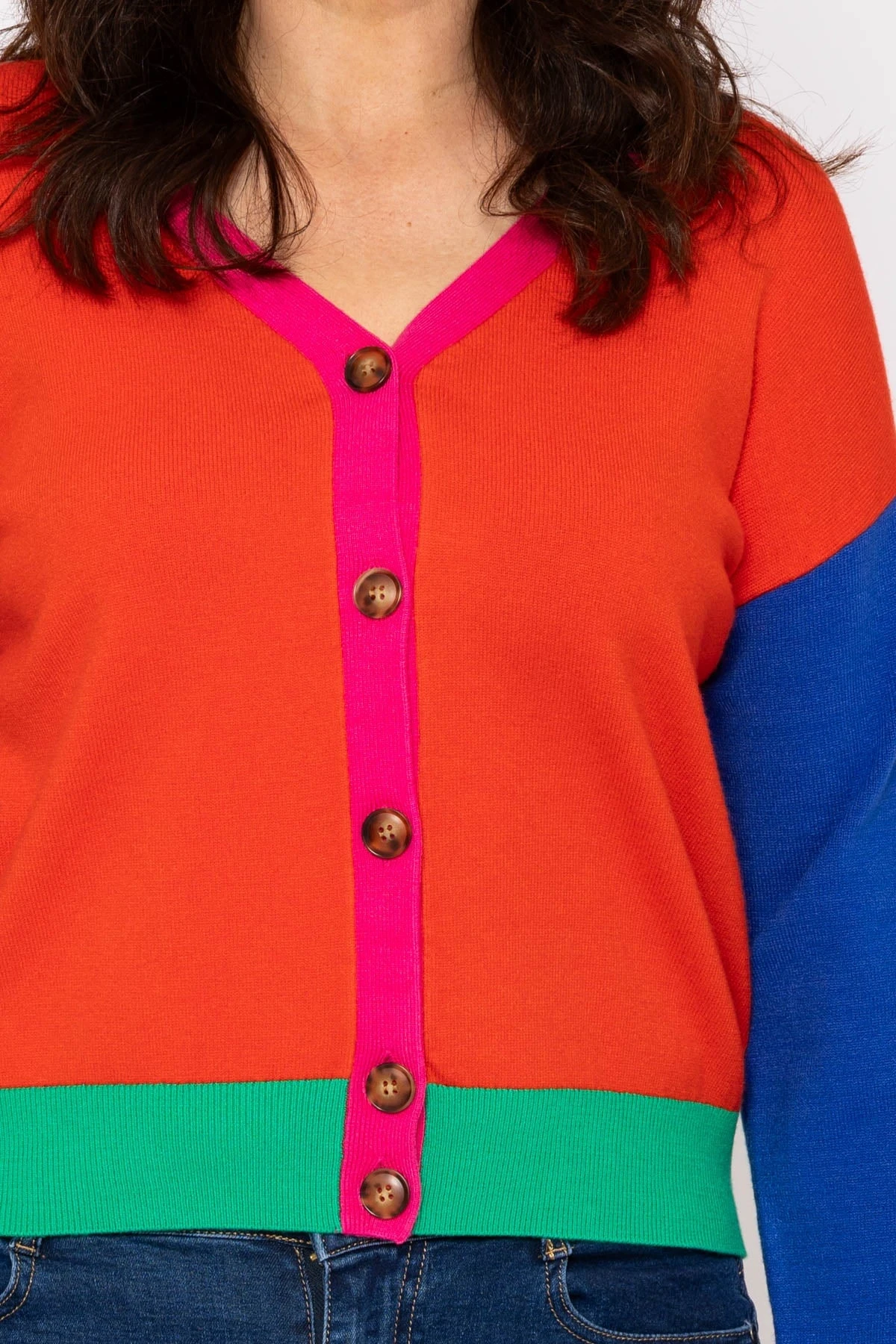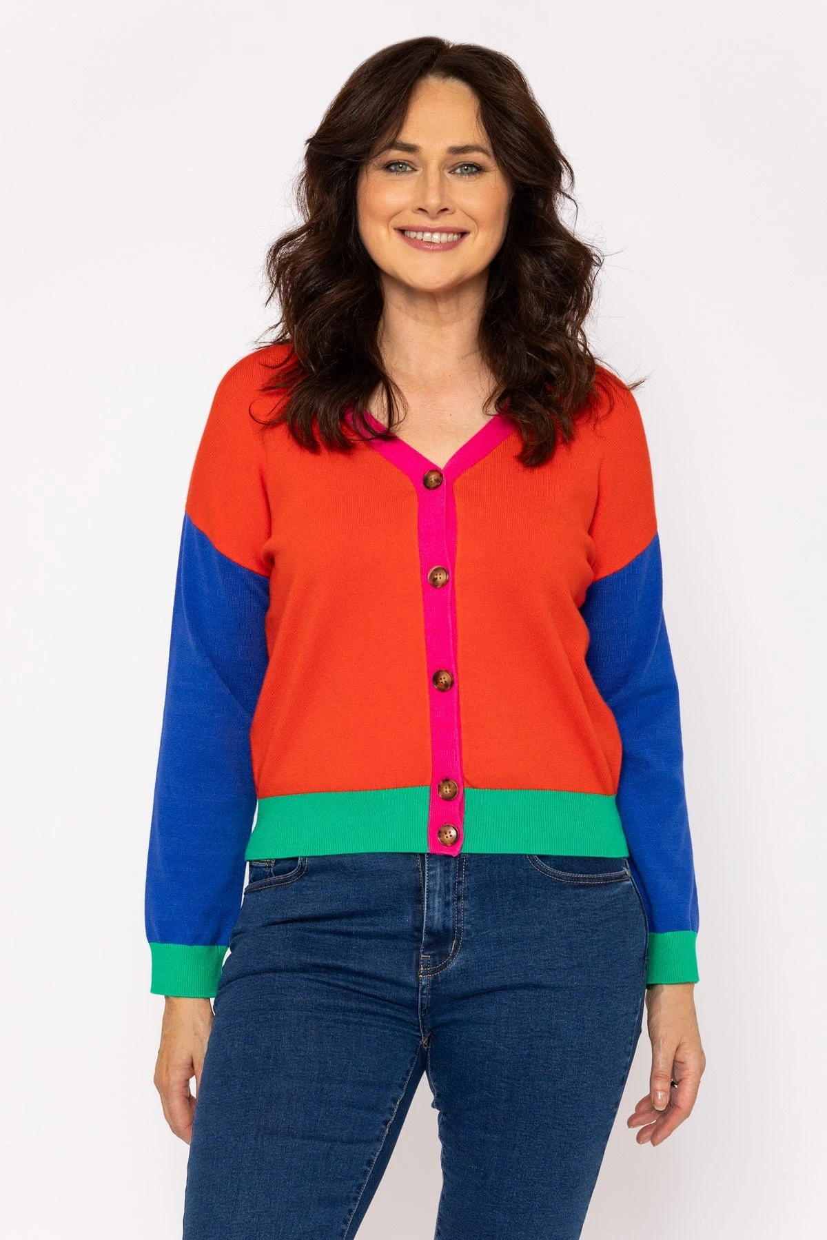 Super soft button cardigan in multi by Kelly & Grace Weekend. This comfortable and soft cardigan is the perfect pick for everyday wear.