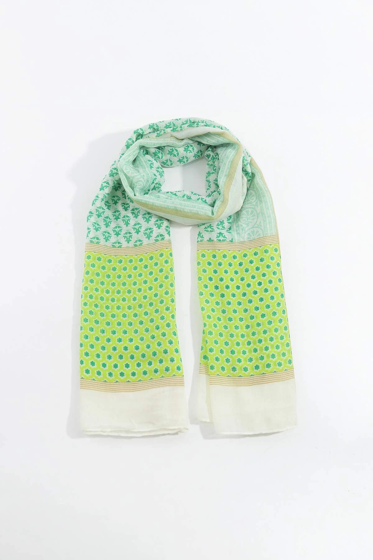 Contrast Green Print Scarf by Soul Accessories. This ladies green scarf adds a pop of color to any outfit and is perfect for both casual and formal occasions.