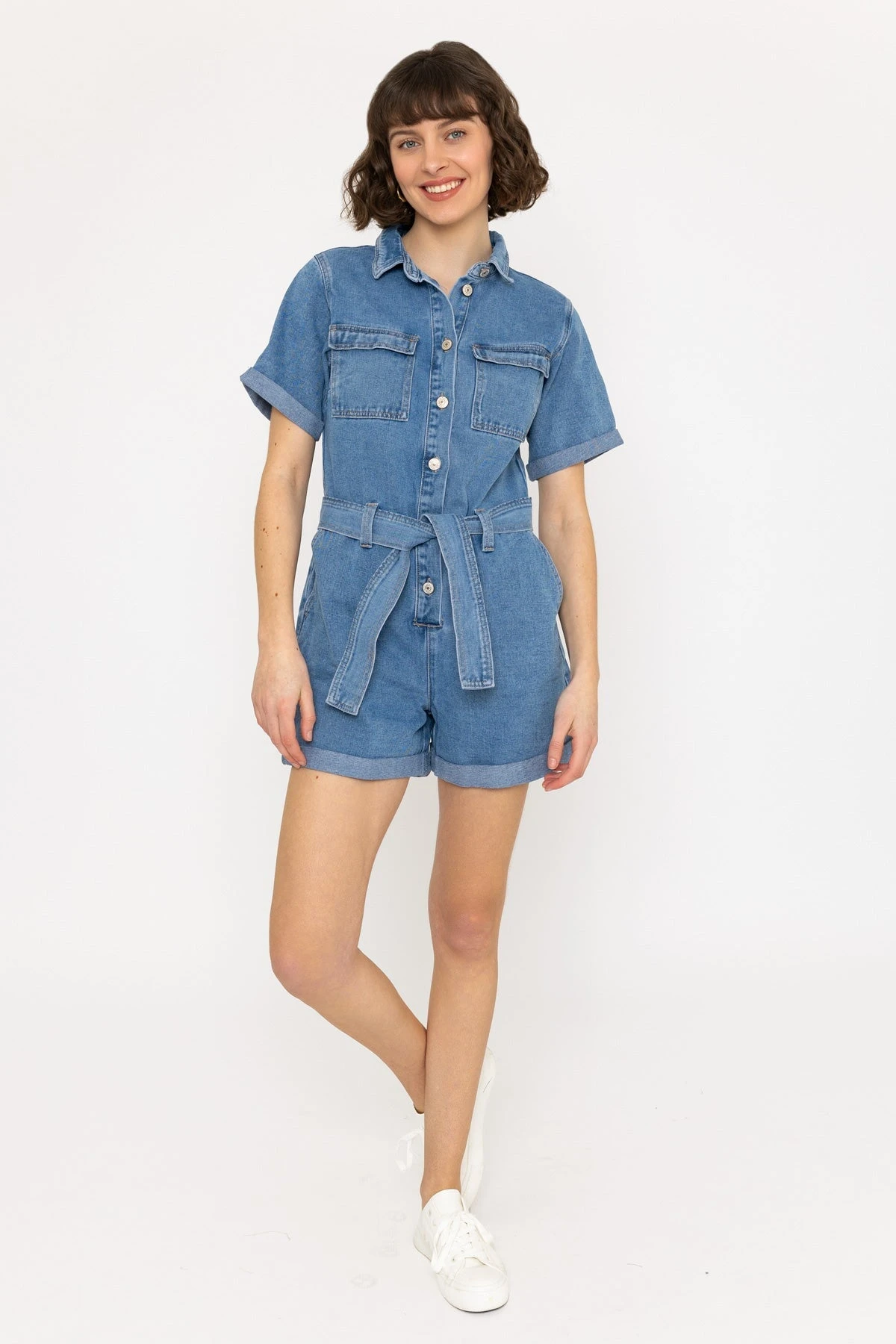 This denim playsuit is part of our exclusive denim edit collection. Made with high-quality denim, this playsuit is both stylish and durable. Perfect for any summer outing, it’s a versatile piece that can be dressed up or down. Elevate your wardrobe with this must-have playsuit.