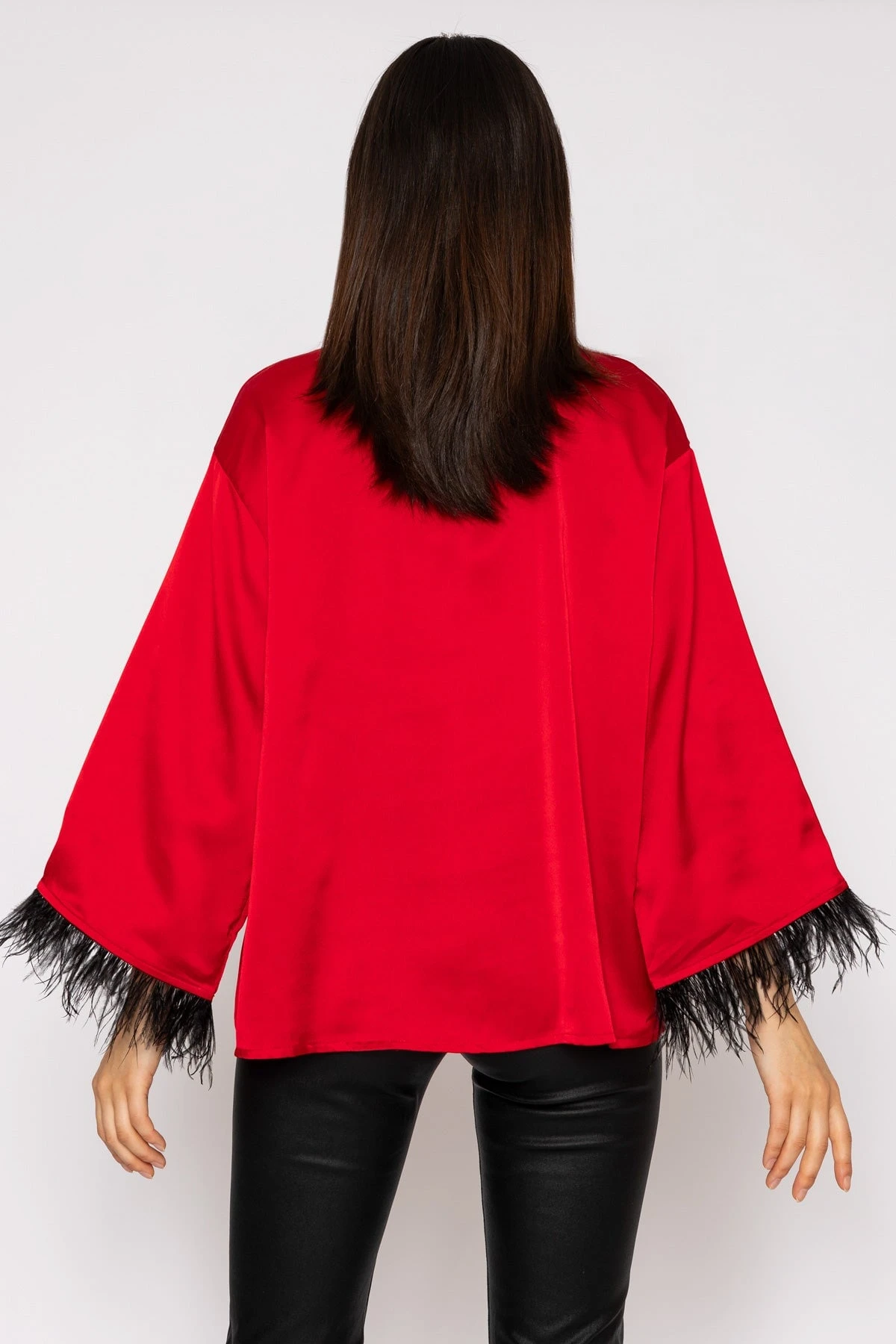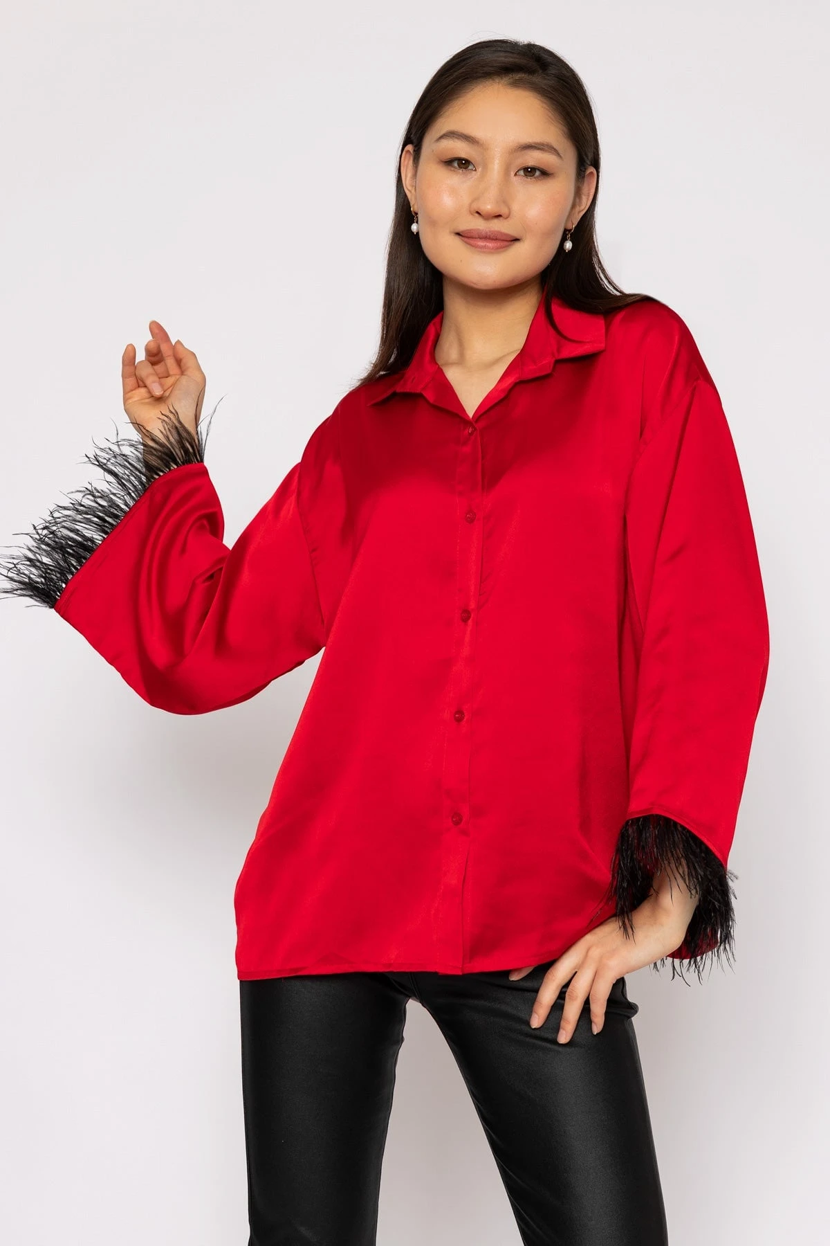 Bestseller feather cuff shirt in red by Pala D’oro. Perfect for any occasion.