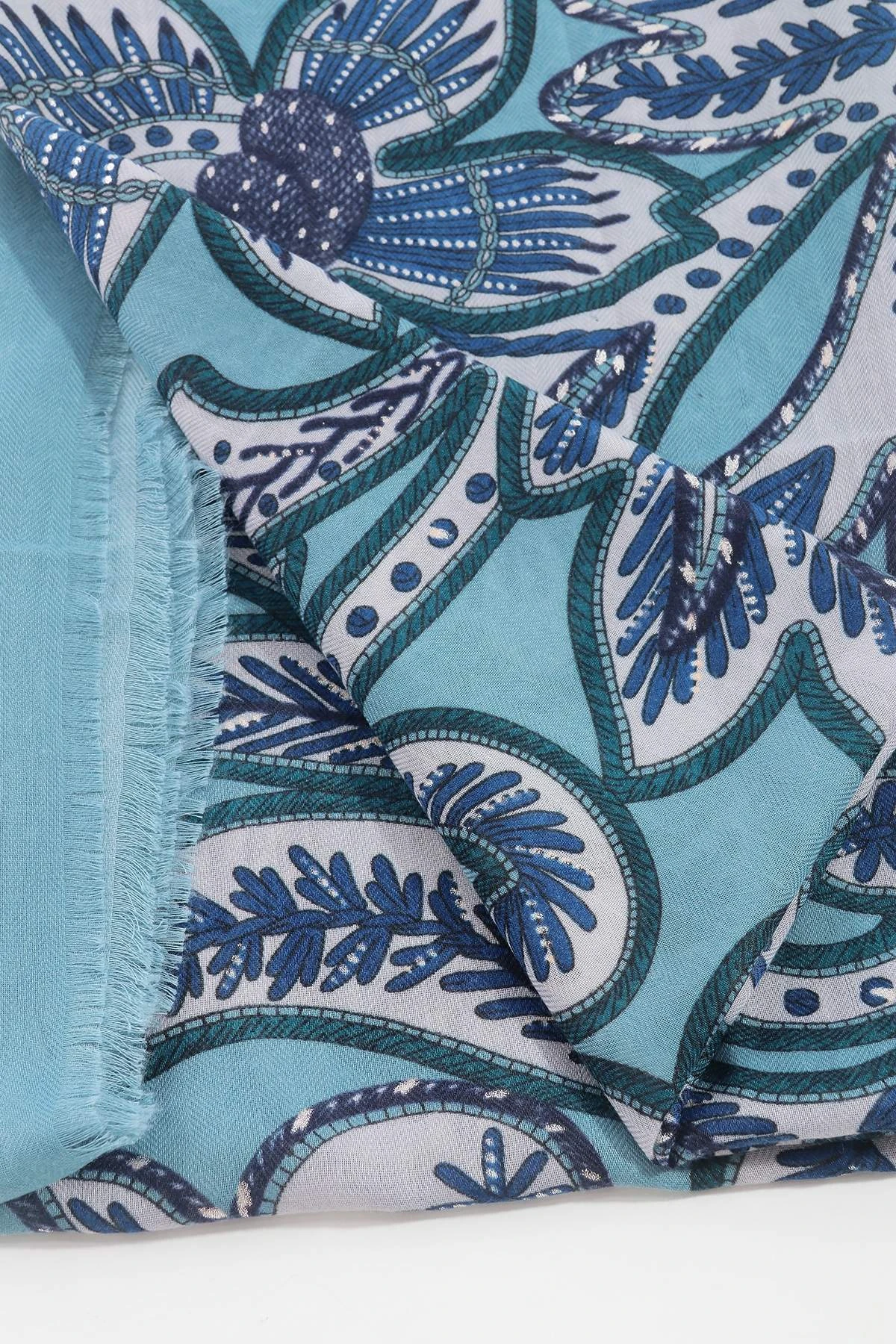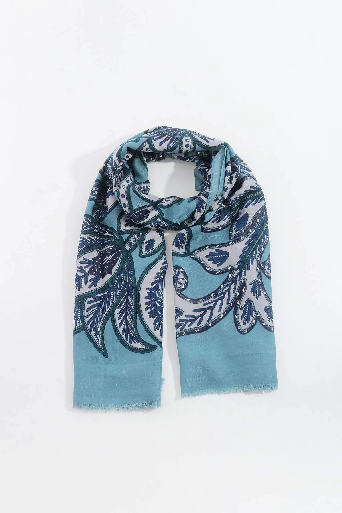 Floral Scarf in Blue by Soul Accessories. This ladies blue scarf features a beautiful floral design that will add a pop of color to any outfit.Â