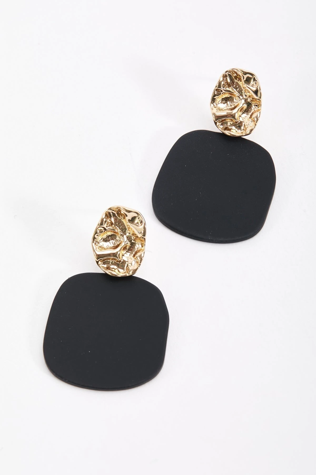 These earrings by Soul Jewellery combine textured gold and black tones for a unique and elegant look.Â