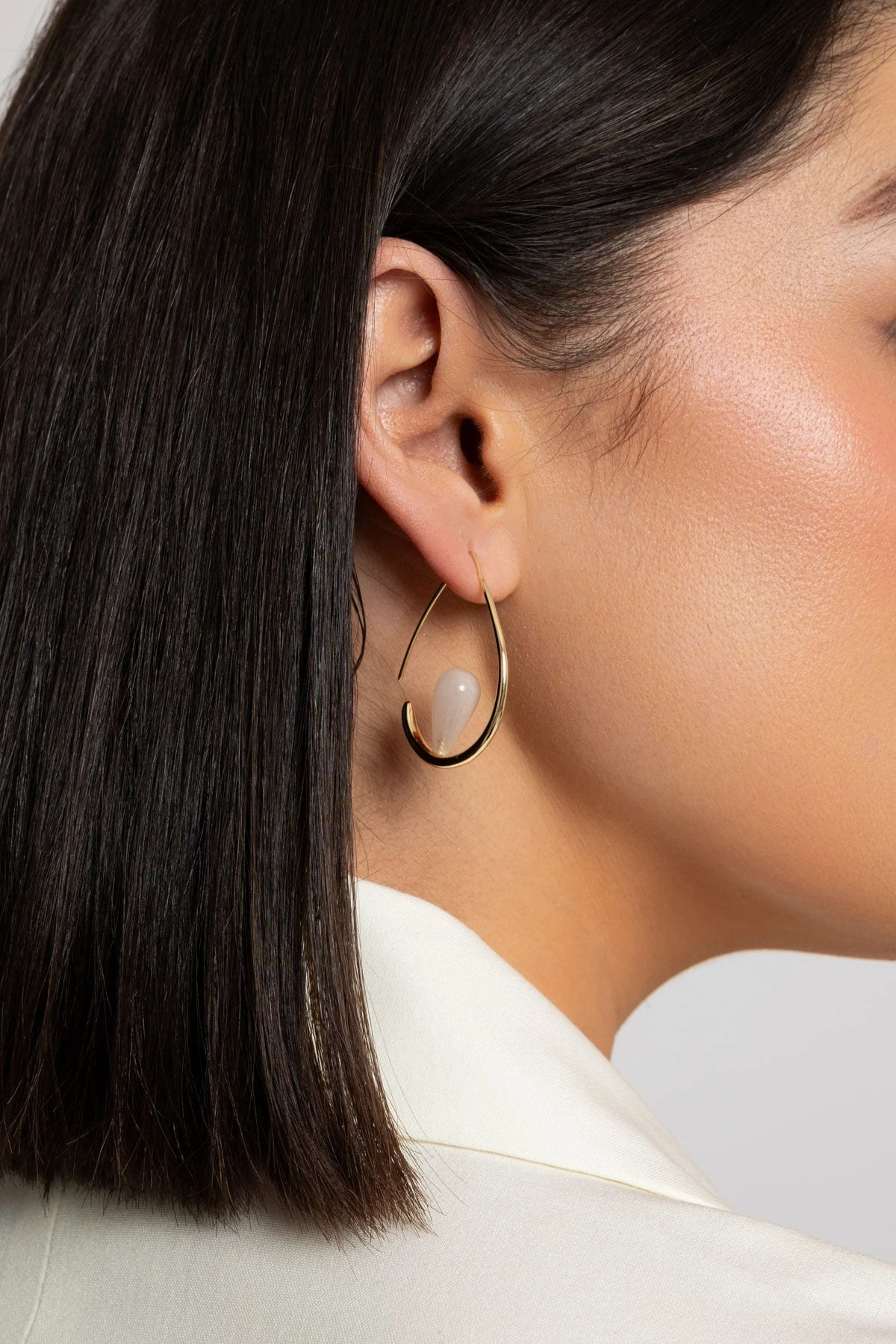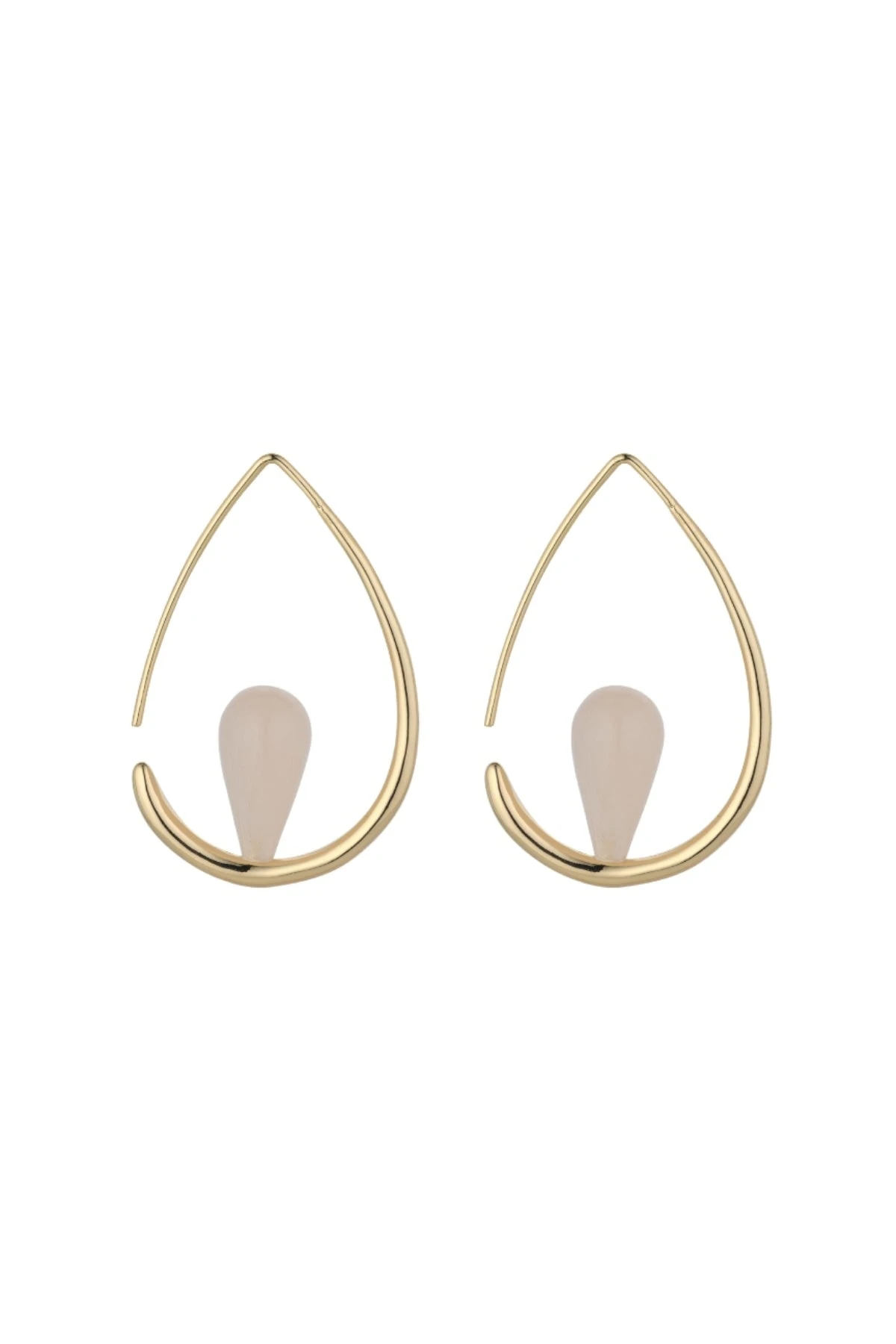 Gia Pink Aventurine Gemstone Hoops by Knight & Day. The gold hoops add a touch of luxury, while the thread earring design make for a unique twist. Perfect to pair with wedding guest or special occasions outfits.Â