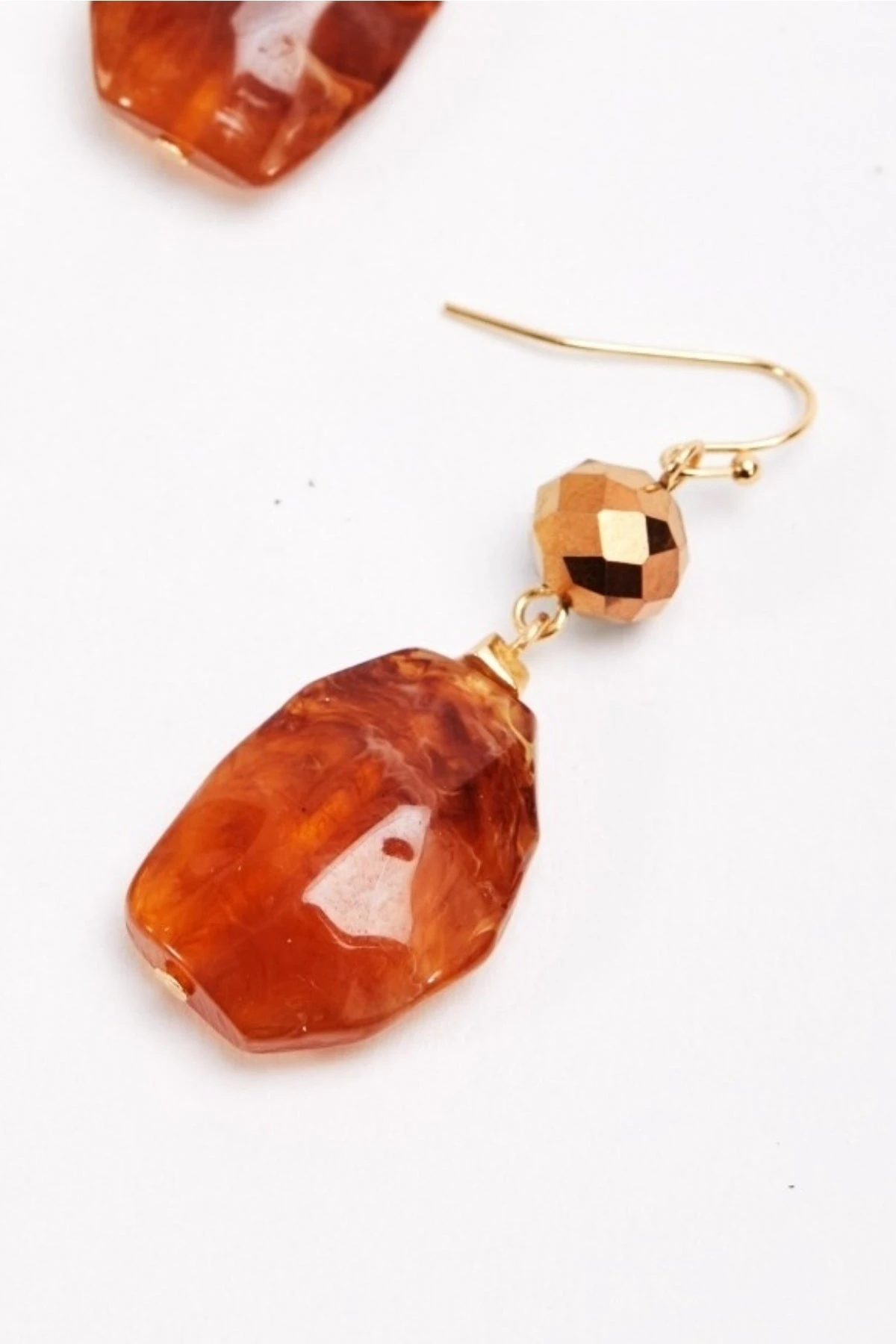 Gold and Brown Beaded Earrings by Soul Jewellery. These ladies earrings feature golden and brown beads, adding a touch of elegance to any outfit. Get the matching necklace and bracelet to complete your ensemble.