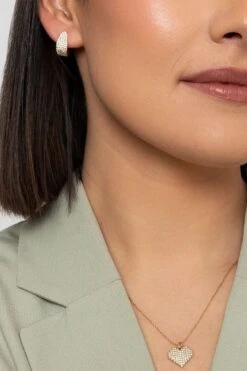 Gold Mini Hoops by Knight & Day. Elegant ladies gold hoop earrings with CZ stones in micro pavé setting.
