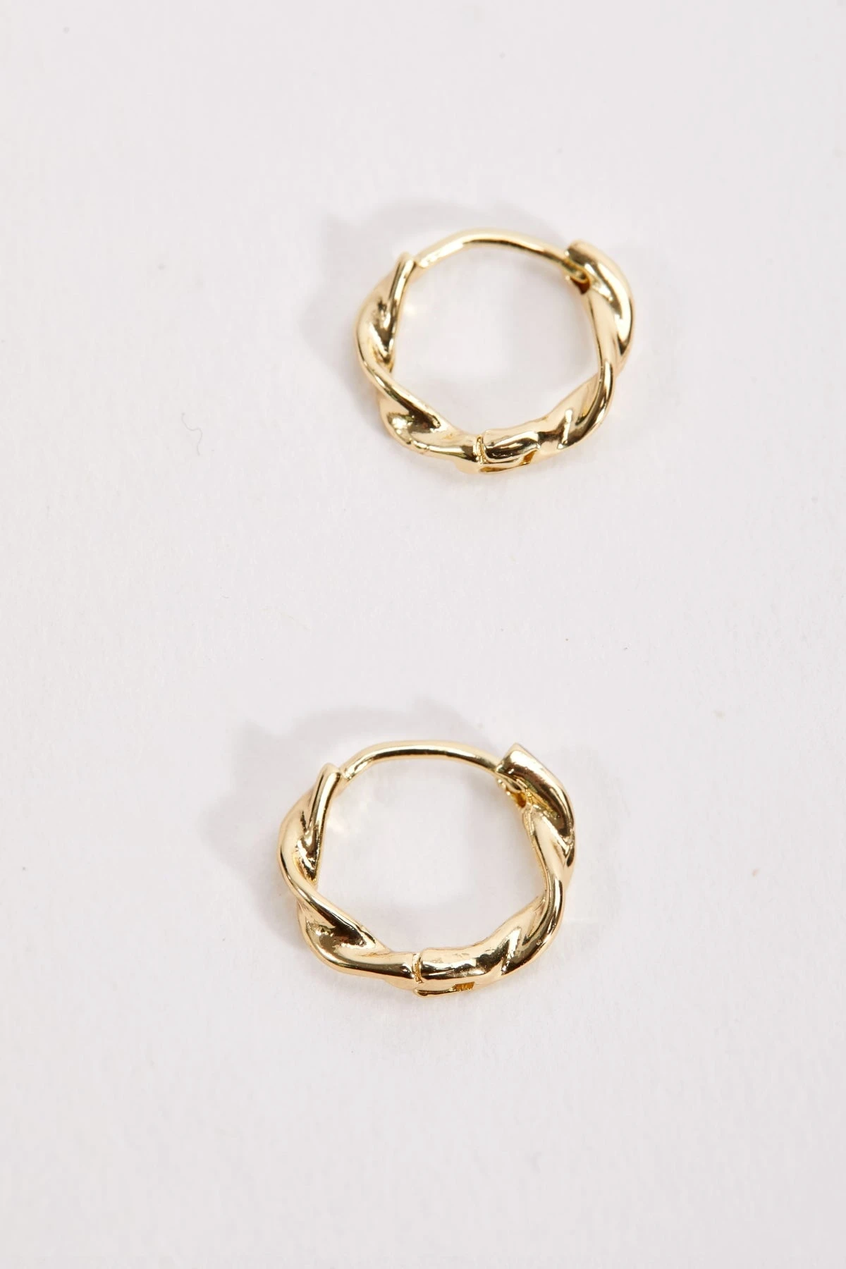 Gold tone twist hoop earrings by Soul Jewellery. These earrings offer a touch of elegance and sophistication to any outfit.