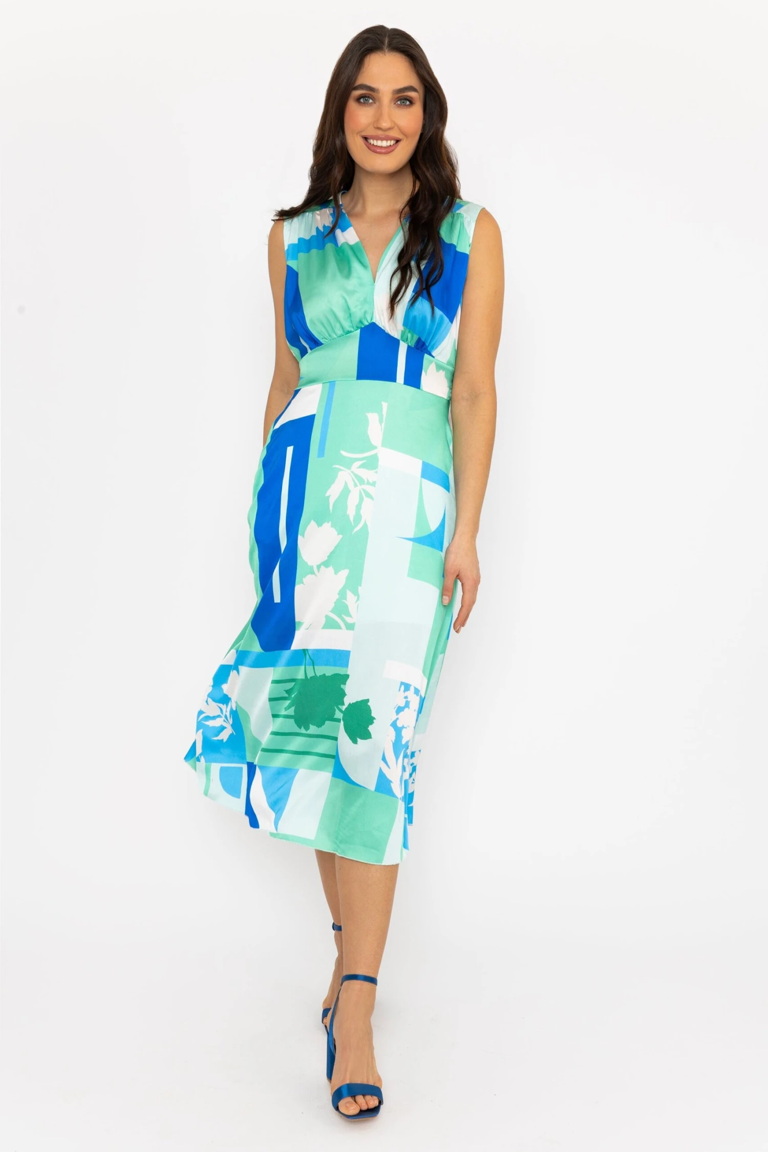 Experience elegance and comfort with our Green Sleeveless Cliodhna Dress by Pala D’oro. This dress is designed to hug your curves and make you feel confident. The colorful color adds a touch of sophistication, making it perfect for any special occasion.Â