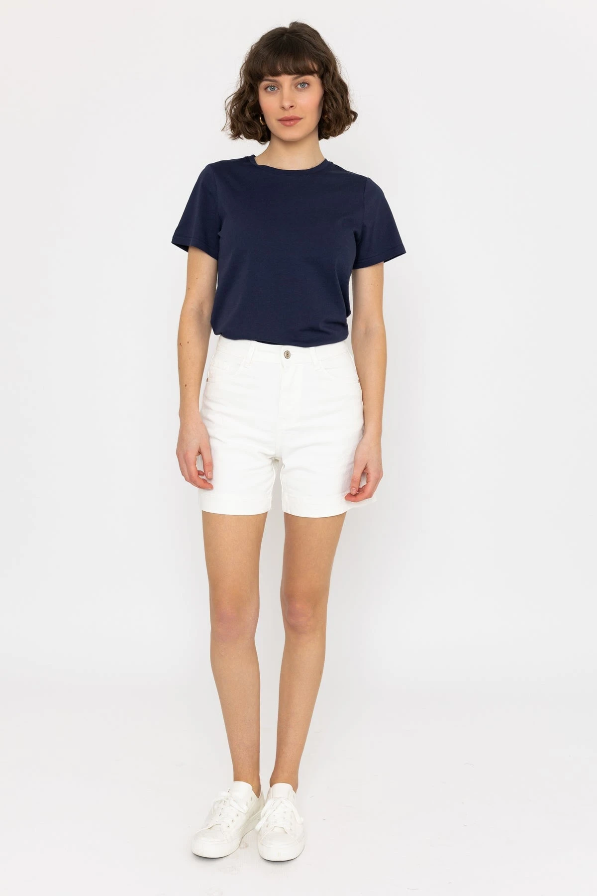 Introducing our High Waisted White Denim Shorts, expertly crafted with a slightly longer leg for a modern and flattering fit. With our high-quality denim material, these shorts will provide lasting comfort and style.Â