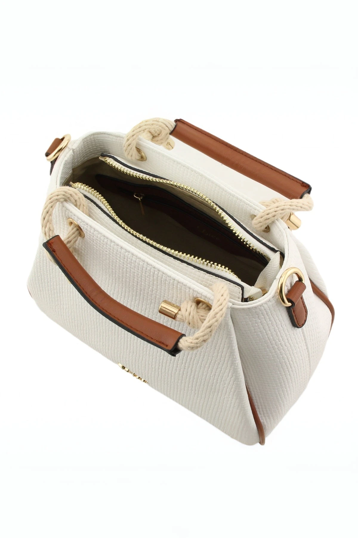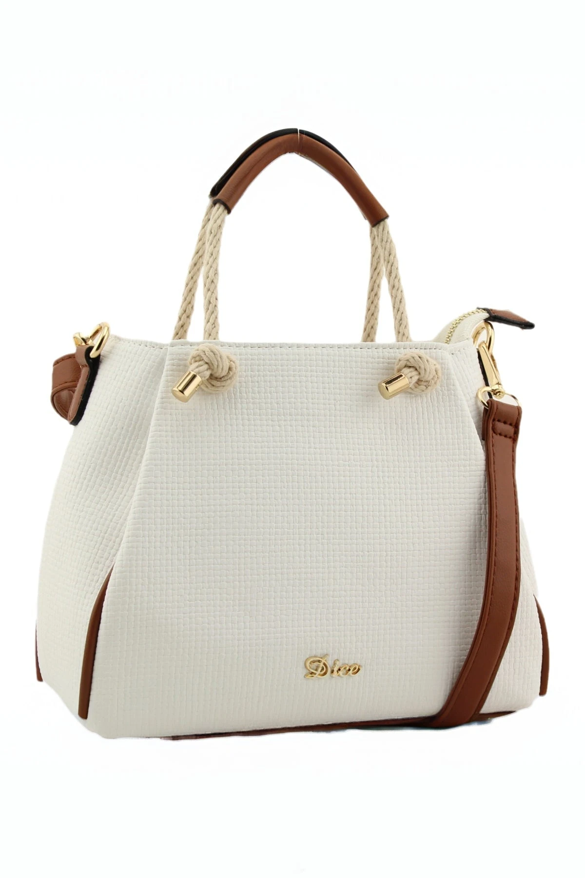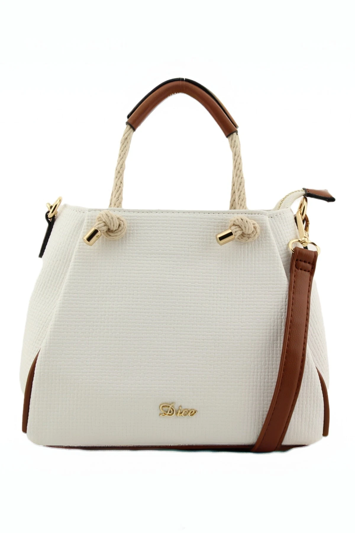 Jade Midi Rope Grab Bag in White by Dice accessories. This stylish bag features a detachable crossbody strap, making it versatile for any occasion.
