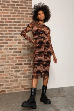 Midi length skirt in brown print by Pala D’oro. Pair this skirt with a top for a fantastic full look.