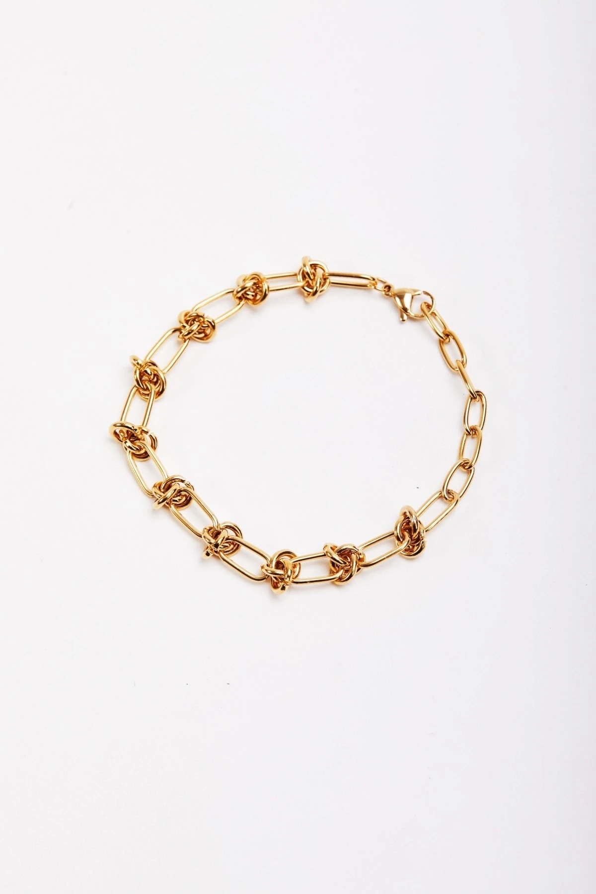 Elevate your style with our Knot Link Bracelet by Joularie. This gold tone ladies bracelet is perfect as a gift for a loved one or as a treat for yourself.