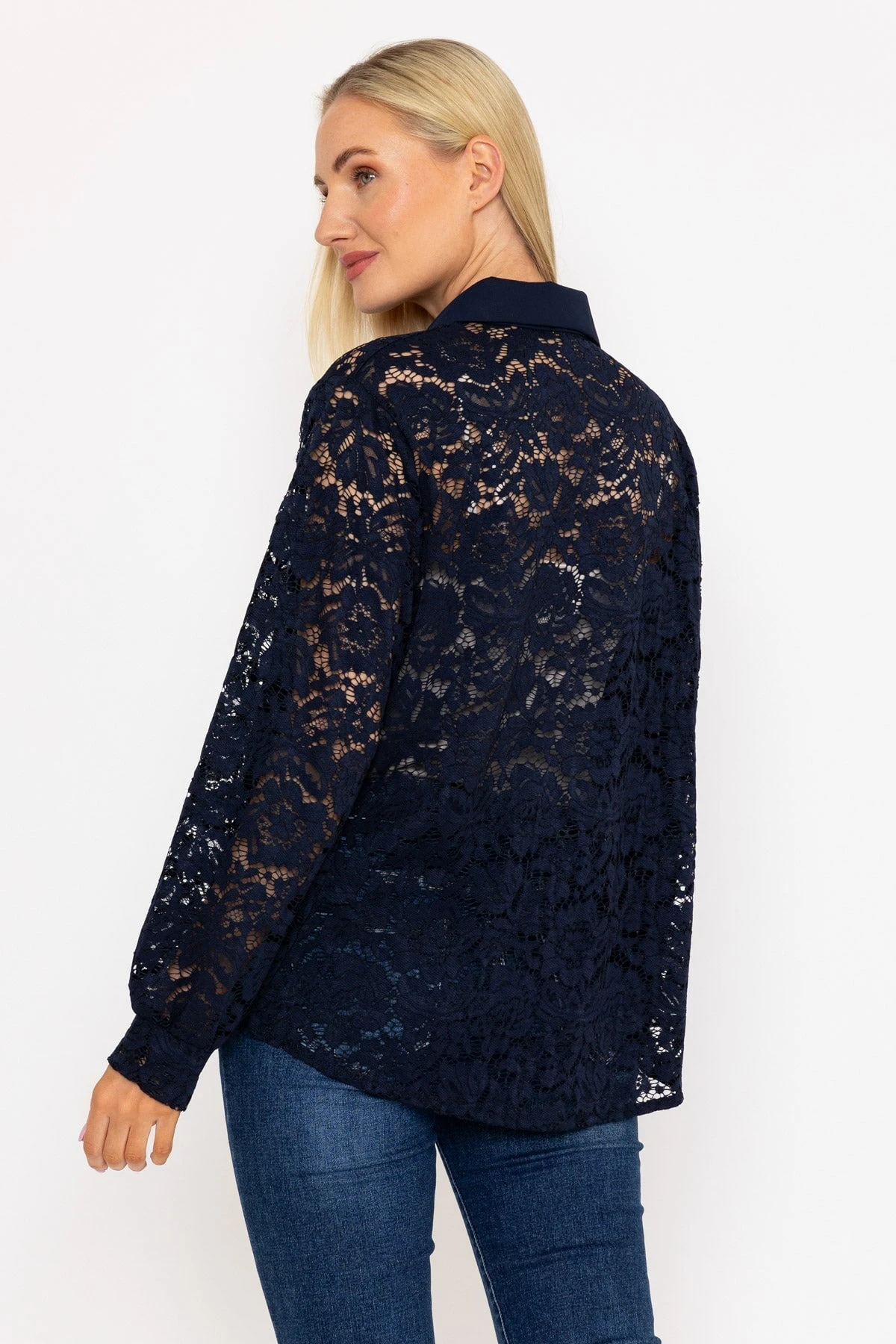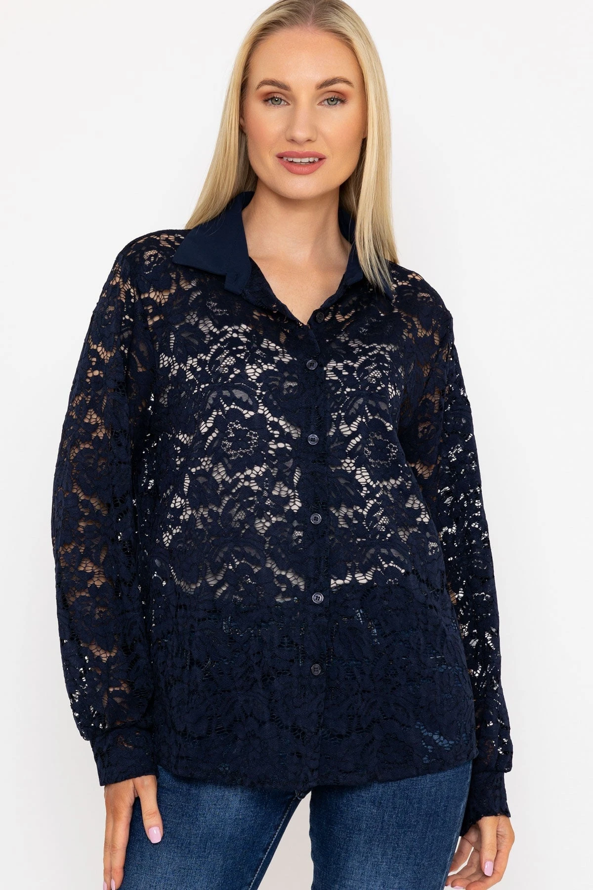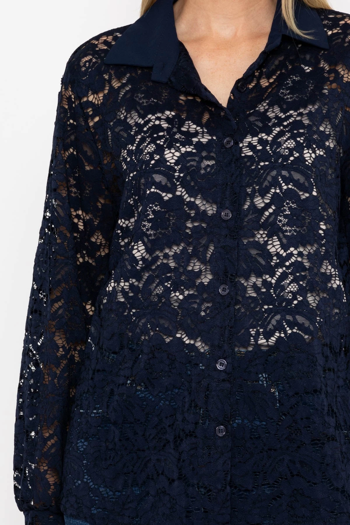 Lace shirt in navy by Pala D’oro. This classic shirt will add a unique touch to your wardrobe.