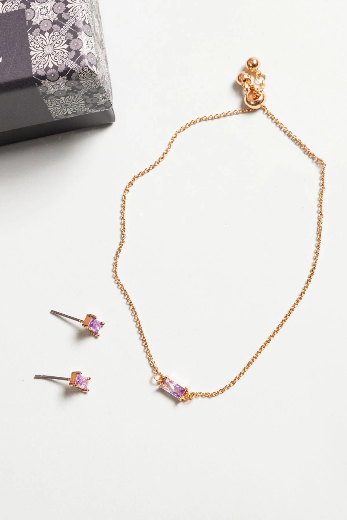 Lilac Stone Bracelet in gold by Soul Special. Presented in a beautiful gift box, this necklace would make a lovely gift for someone or a treat for yourself.