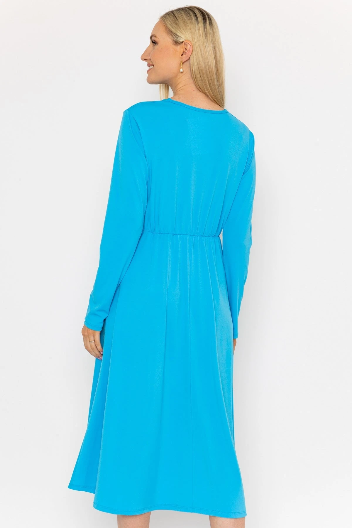 Lisa Blue Midi Dress by Pala D’oro. The perfect choice for any wedding guest. Its elegant design is sure to make you stand out, while its comfortable fit will keep you feeling confident and beautiful all night long.