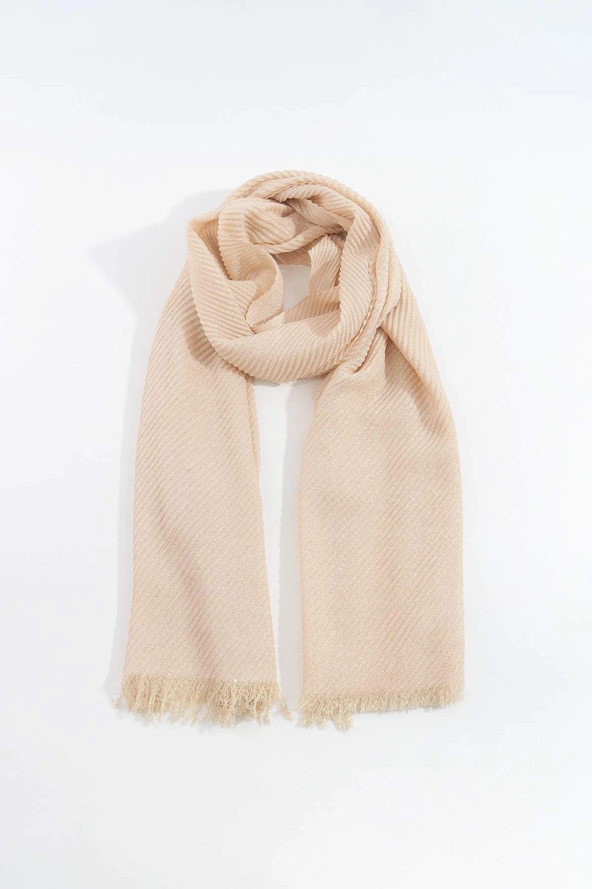 Lurex Pleated Occasion Scarf in Beige by Soul Accessories. Perfect for weddings and other special occasions, this scarf will bring a touch of luxury to your outfit.