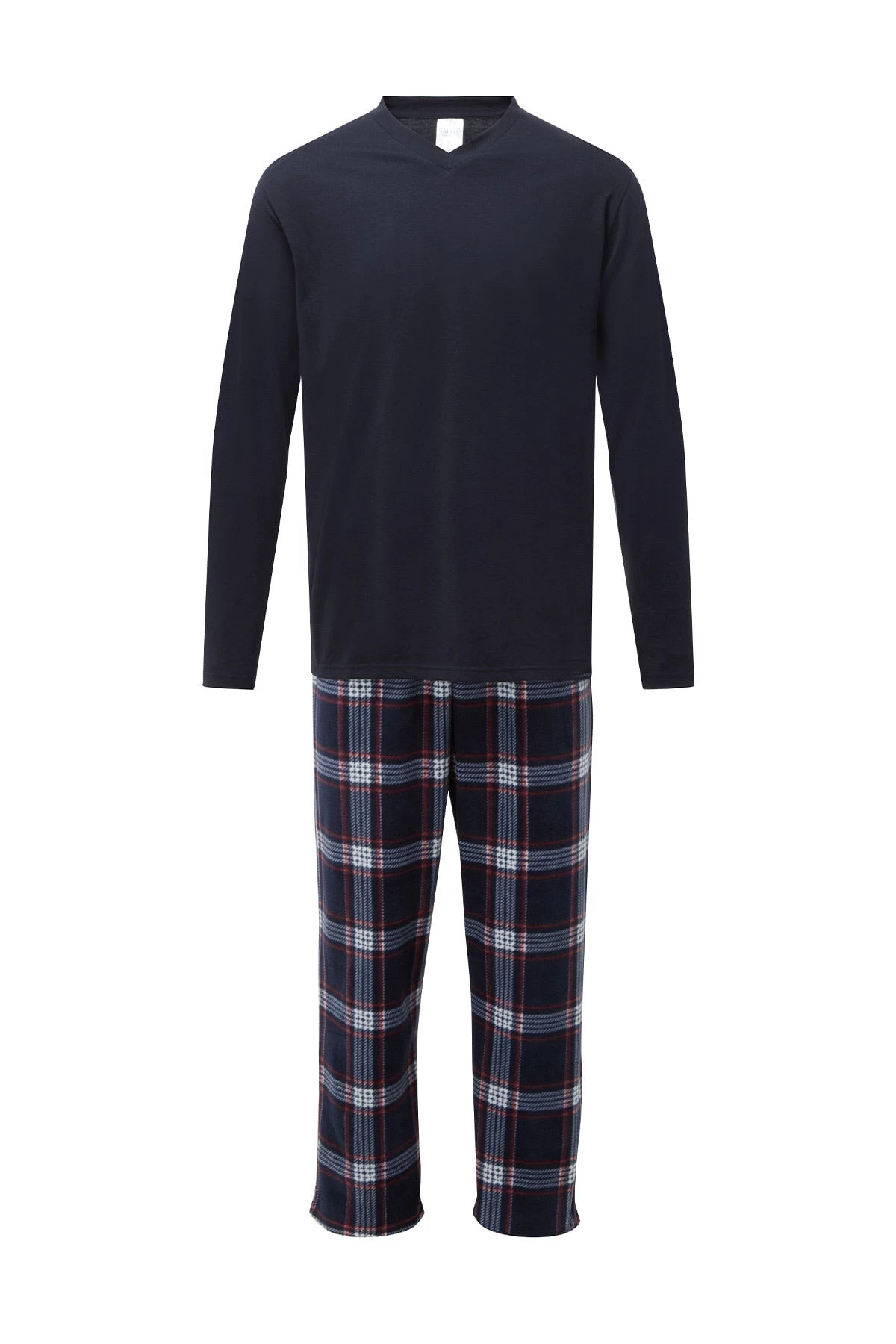 Mens Check Pyjamas Set in Navy. Fleece top and check bottoms.