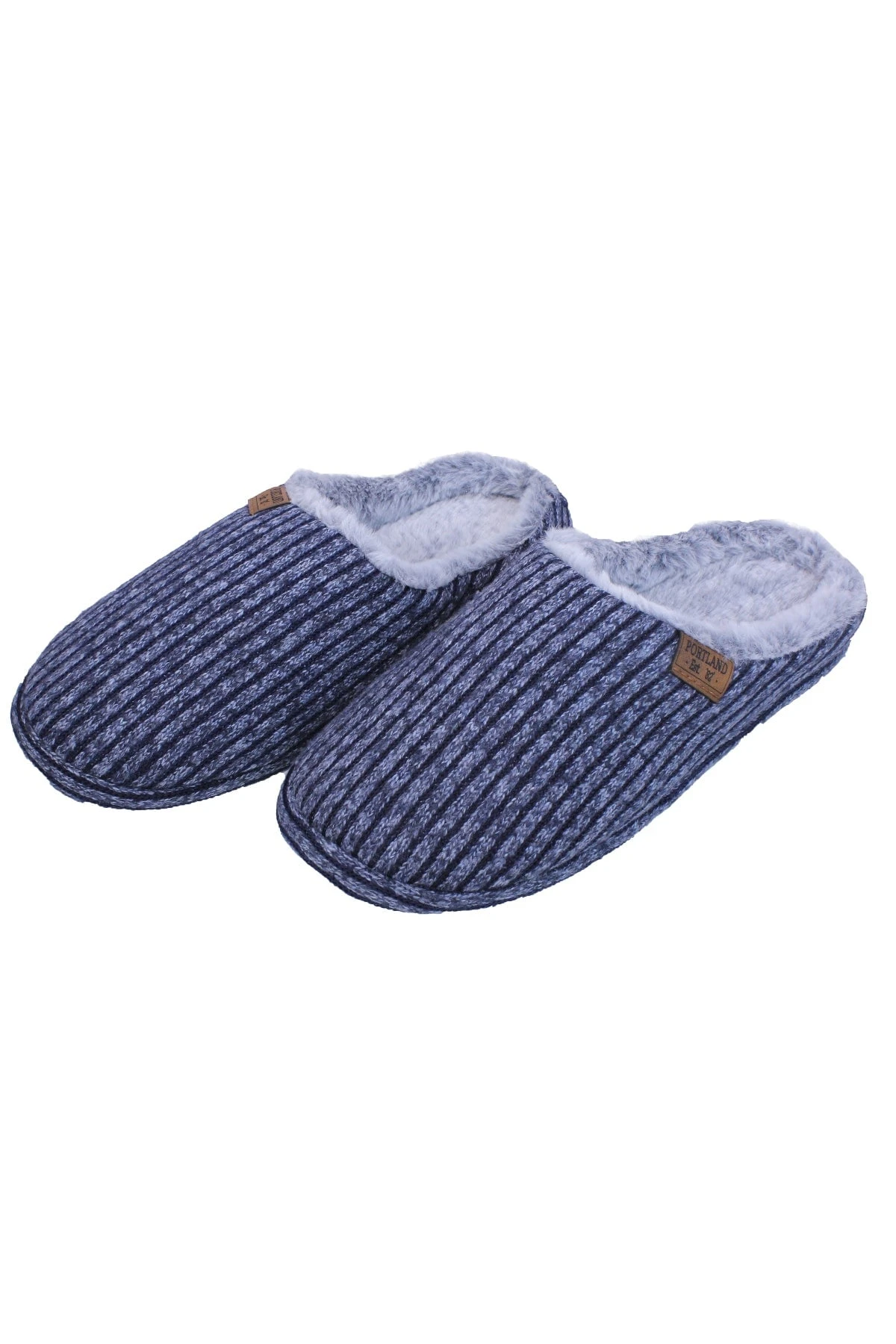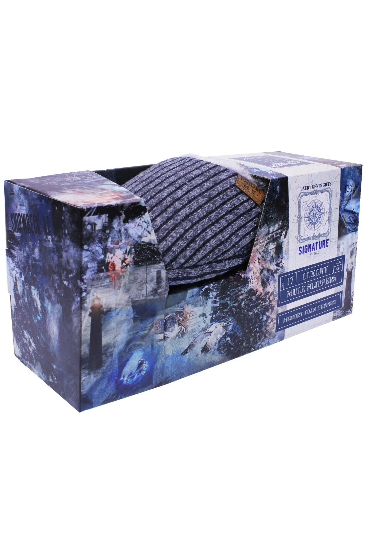 Mens Chunky Knit Mule Slippers in Blue. Presented in a gift box.