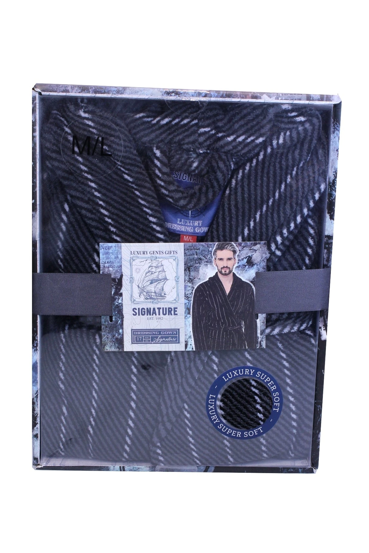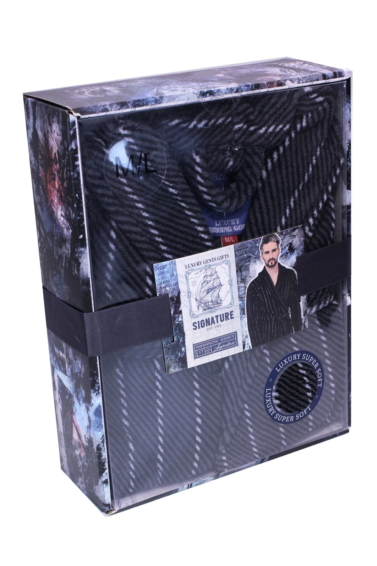 Boxed Men’s Blue Dressing Gown in Charcoal. Presented in a beautiful gift box.
