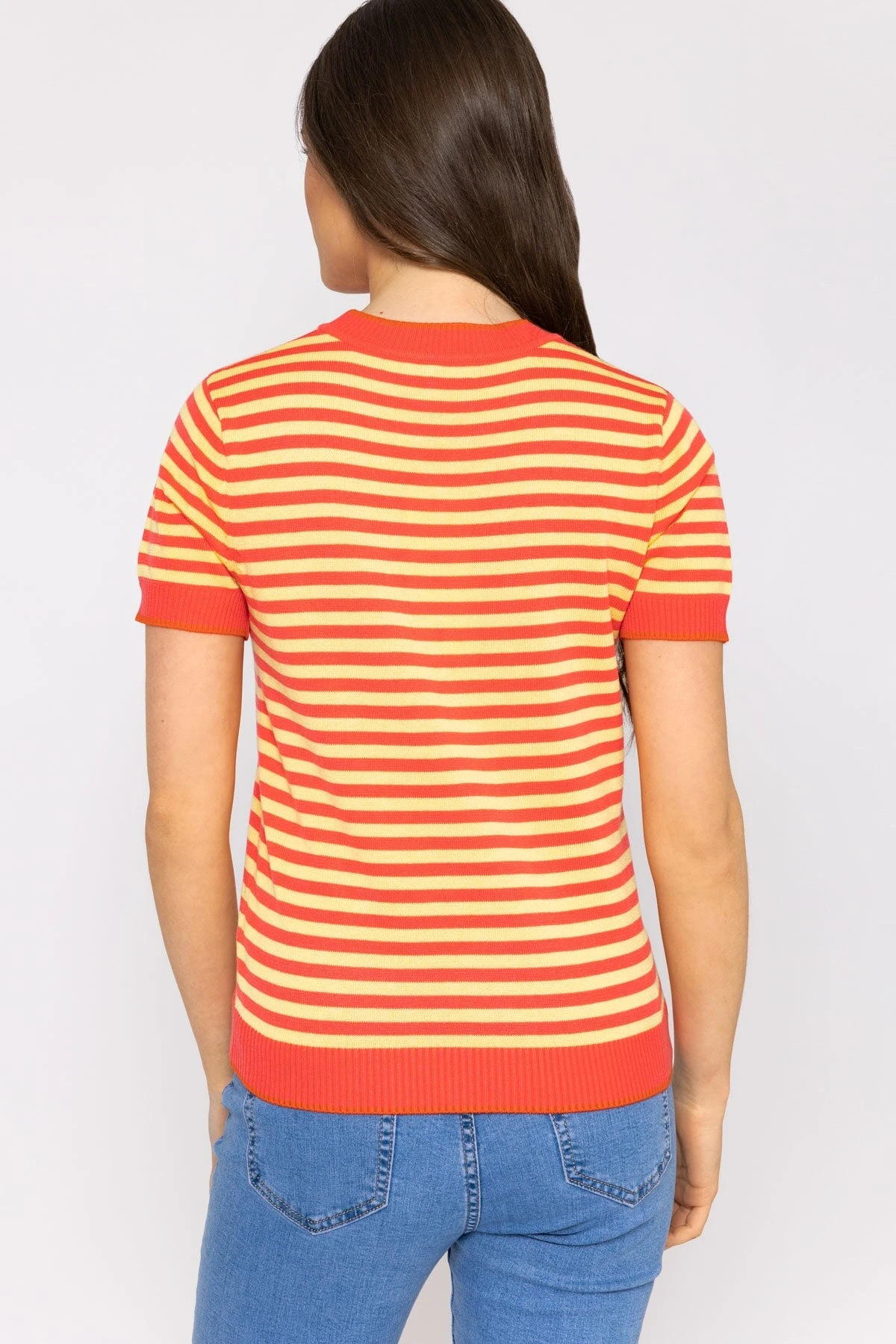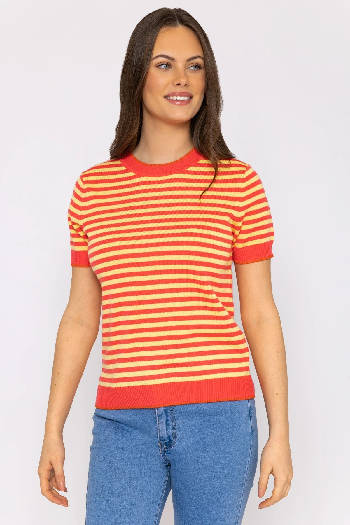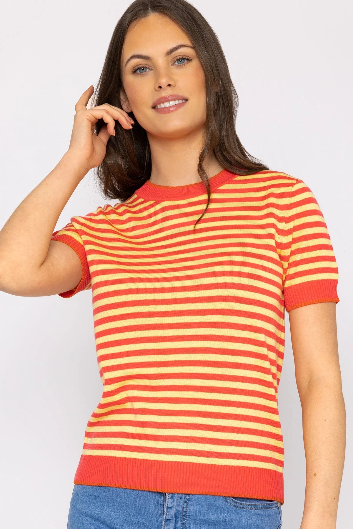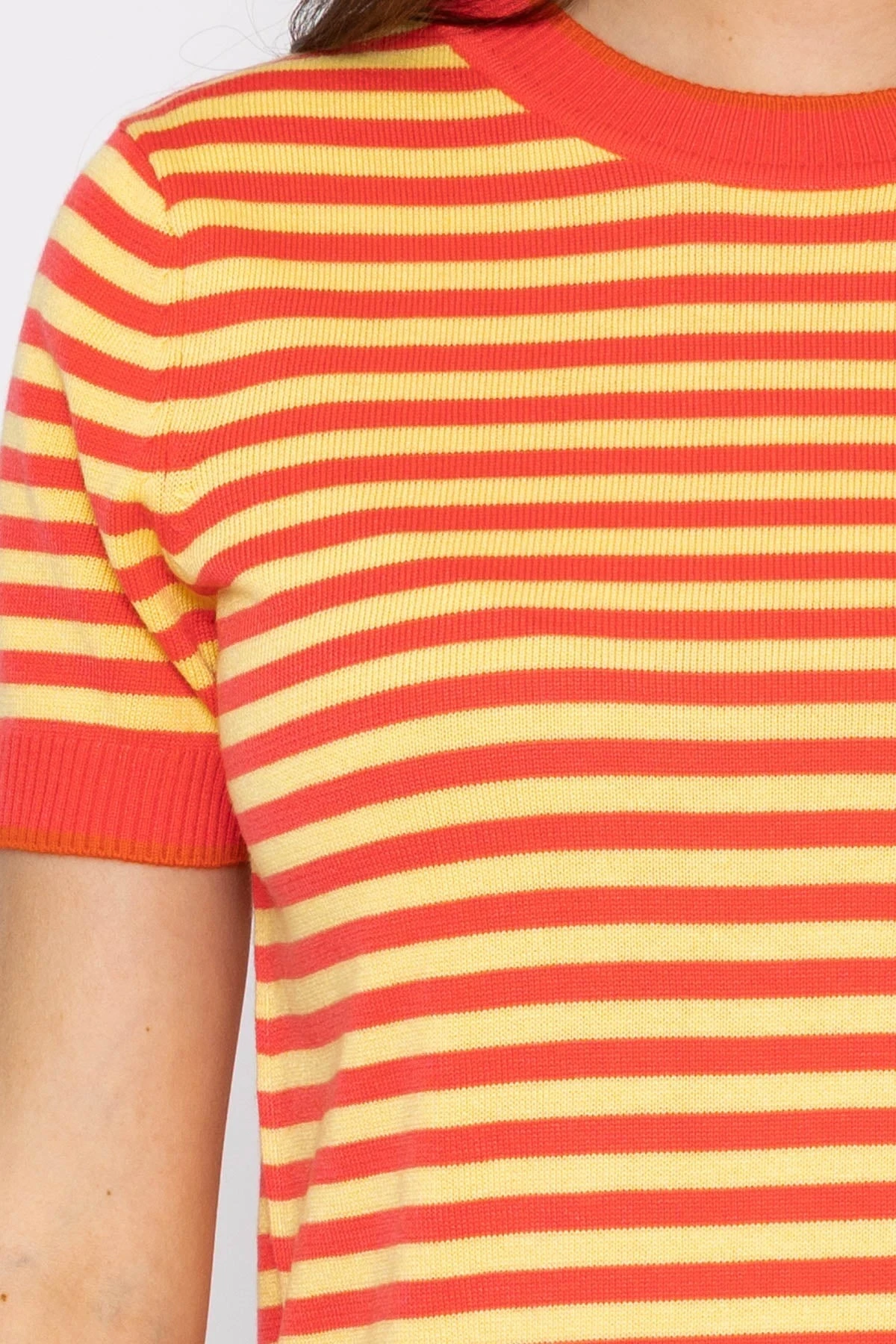 Merino stripe crew in coral and yellow by Kelly & Grace Weekend.