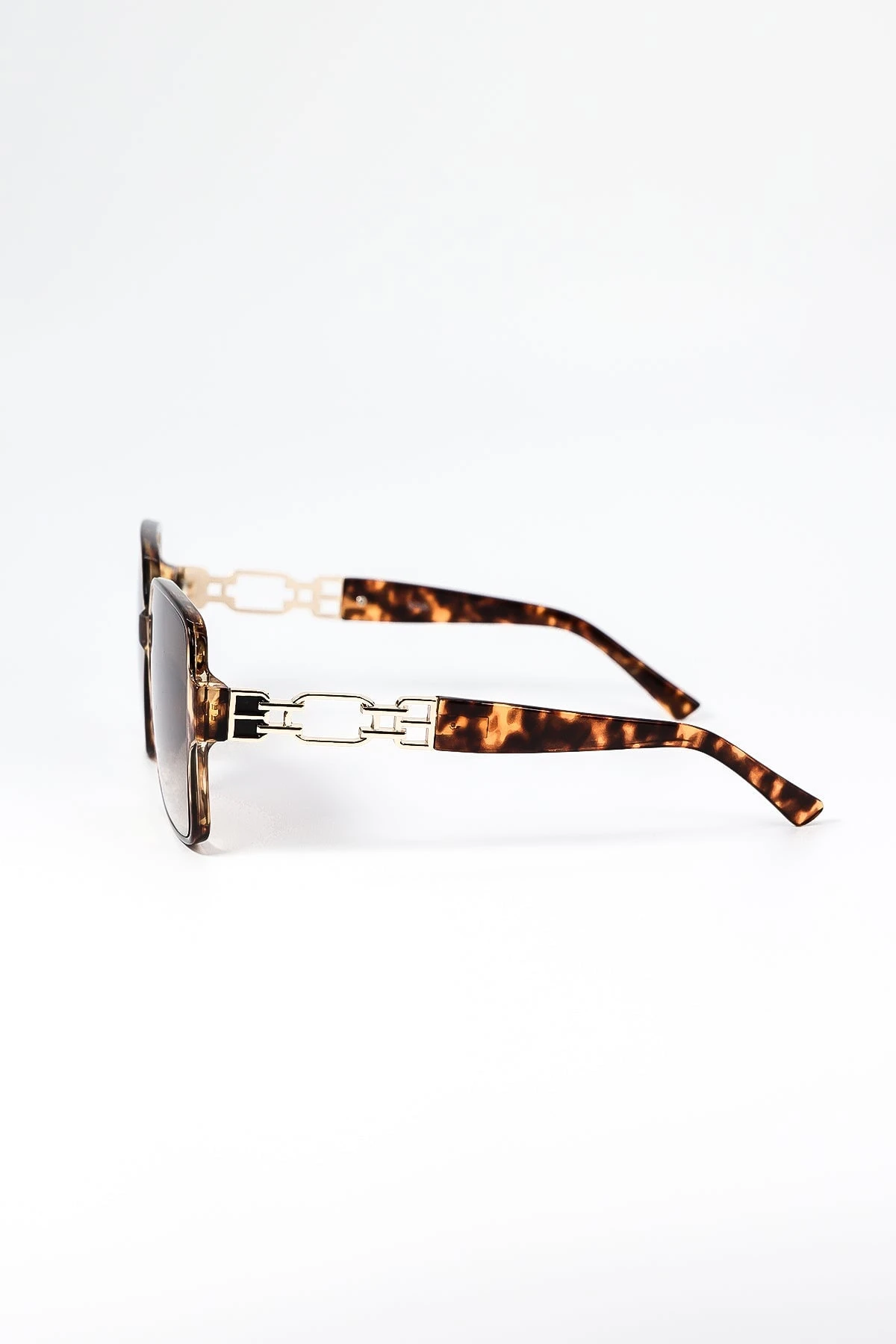 - Brown Sunglasses with Links Detail Gold detail on arms