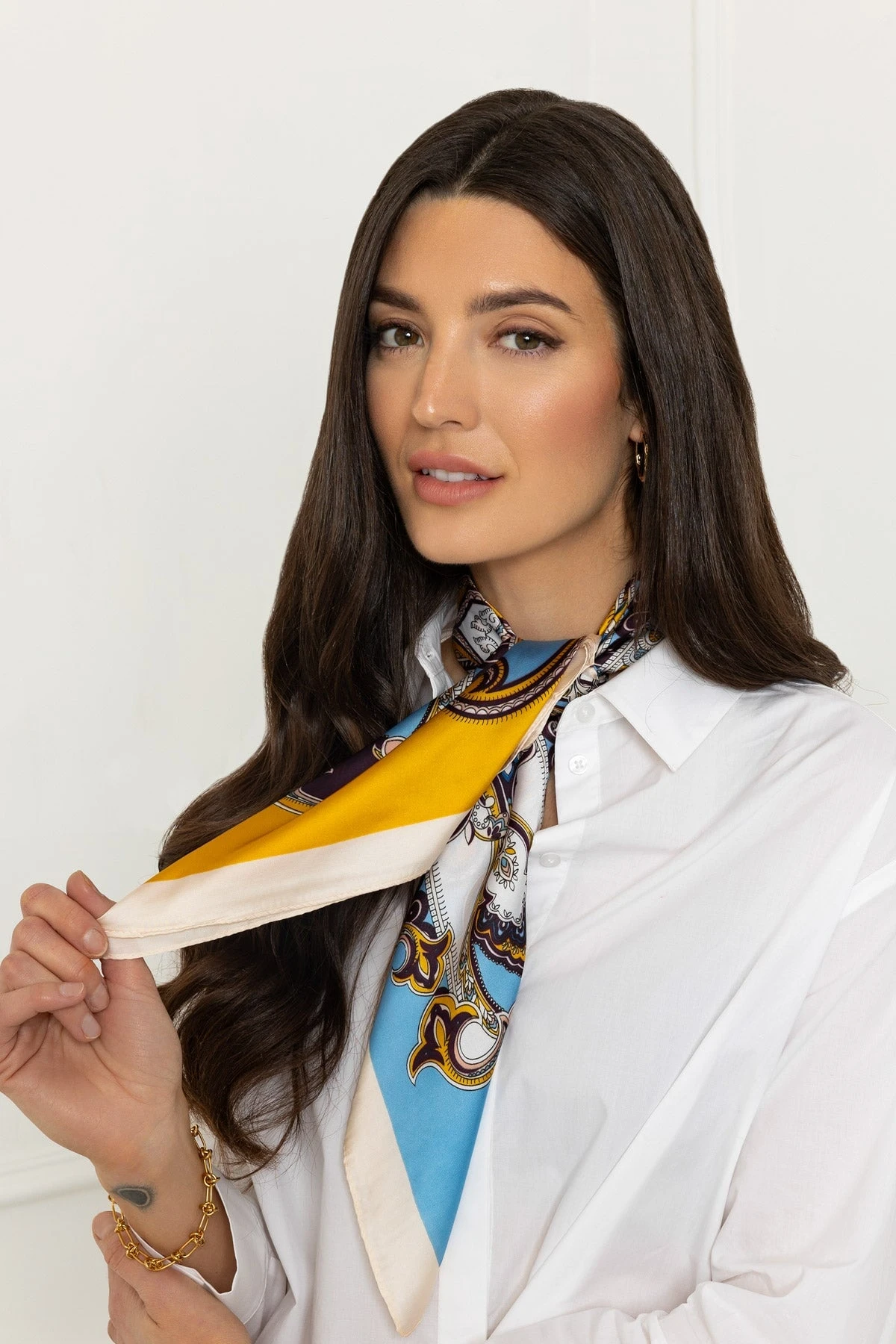Made from soft and lightweight material, the Paisley Neckerchief Scarf in Yellow can be styled in various ways for any occasion.Â