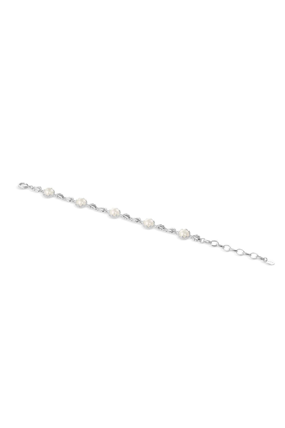 Leave a lasting impression with this on trend silver plated bracelet from Newbridge Silverware featuring glass pearl stone settings paired with leaf motif detail, radiating style and sophistication.