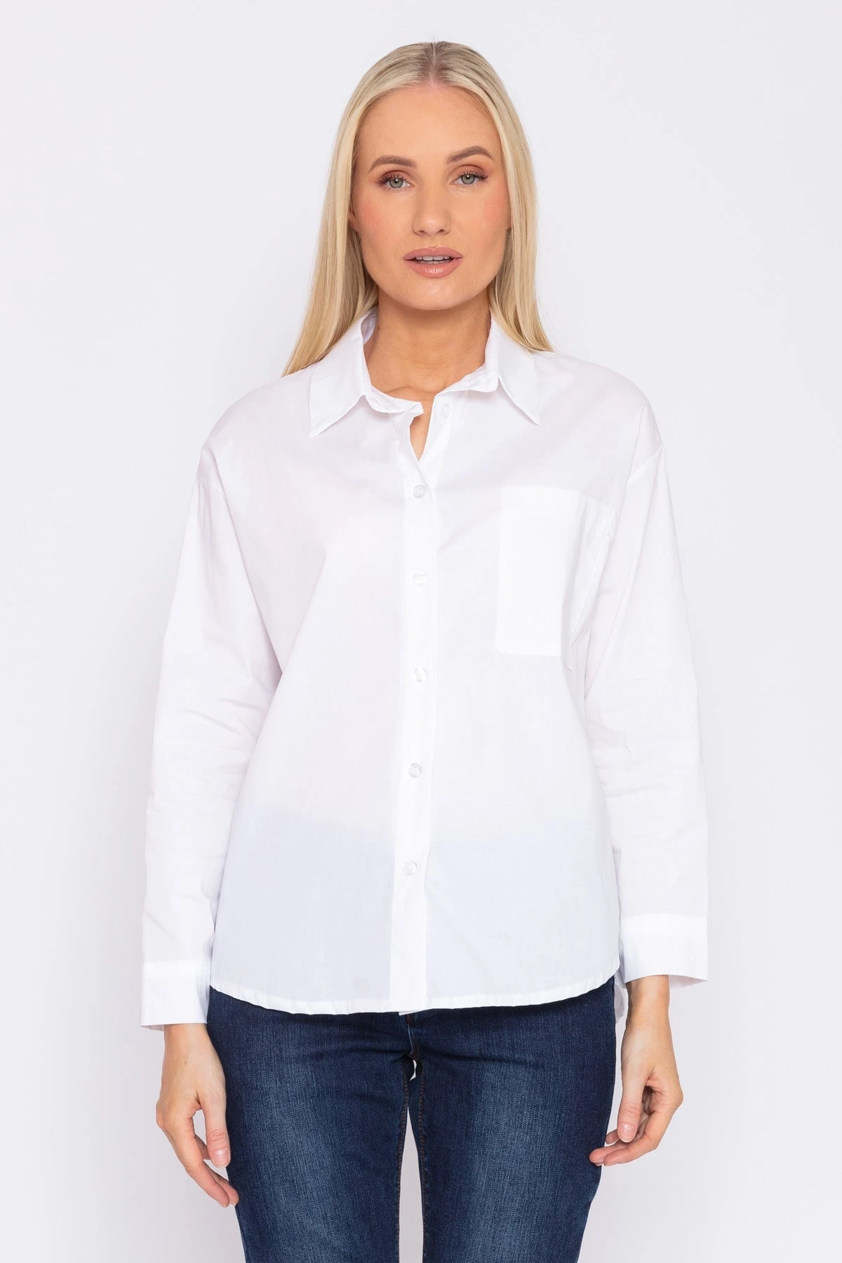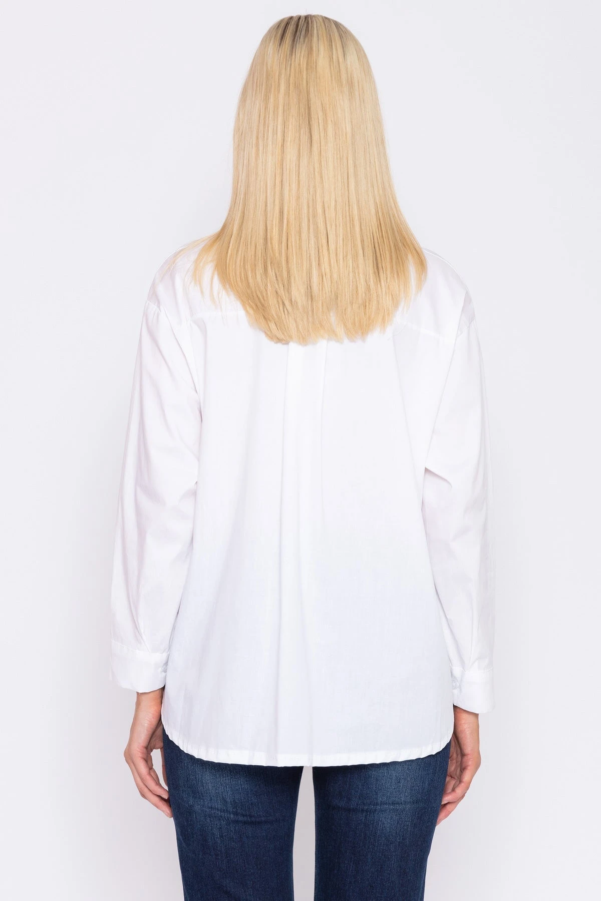 Classic cotton shirt in white by Rowen Avenue. This shirt is a great basic for any wardrobe. It’s the perfect workwear top for an effortless and polished look. Crafted with lightweight poplin for all-day comfort, this versatile shirt will be a staple in your closet for years to come.