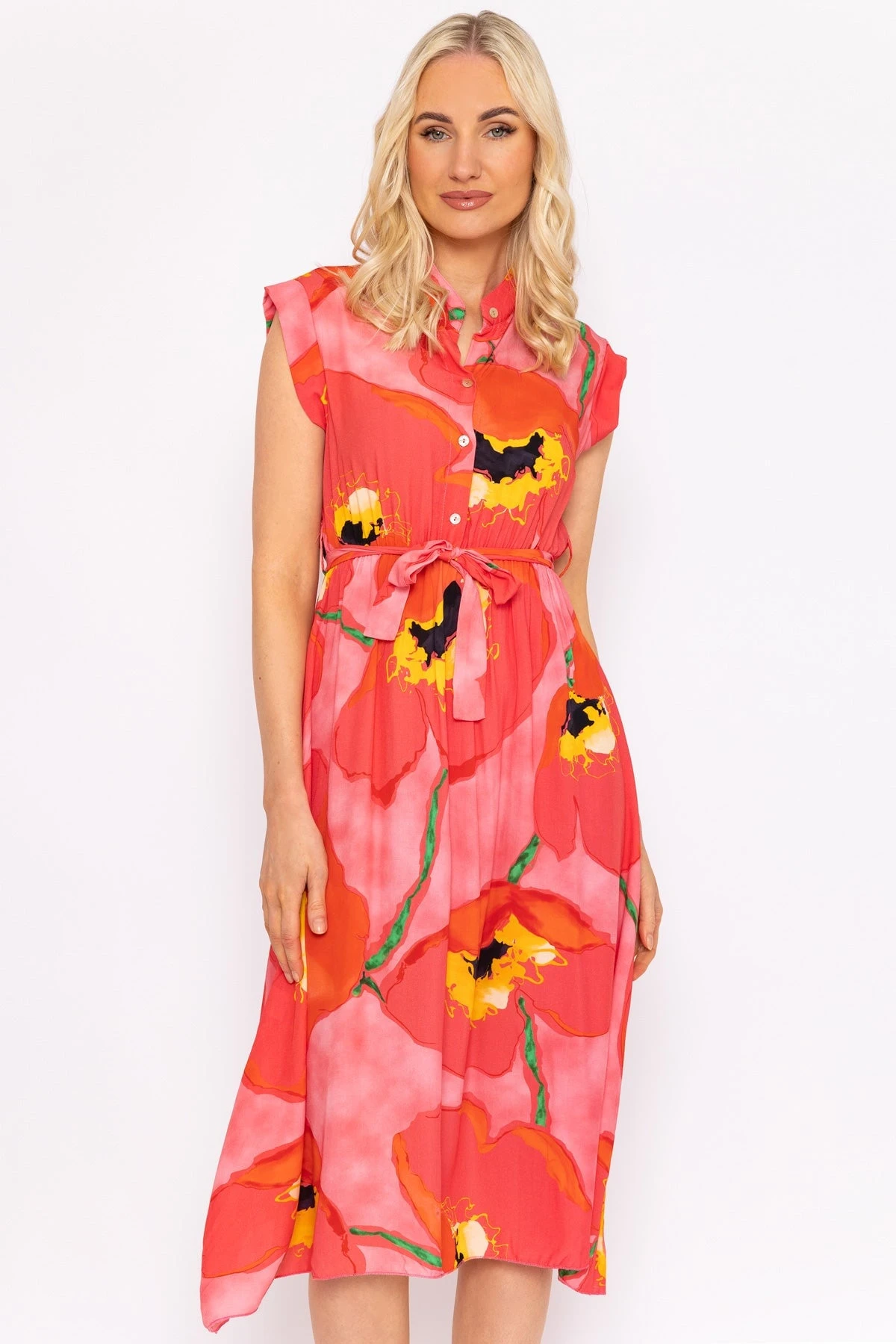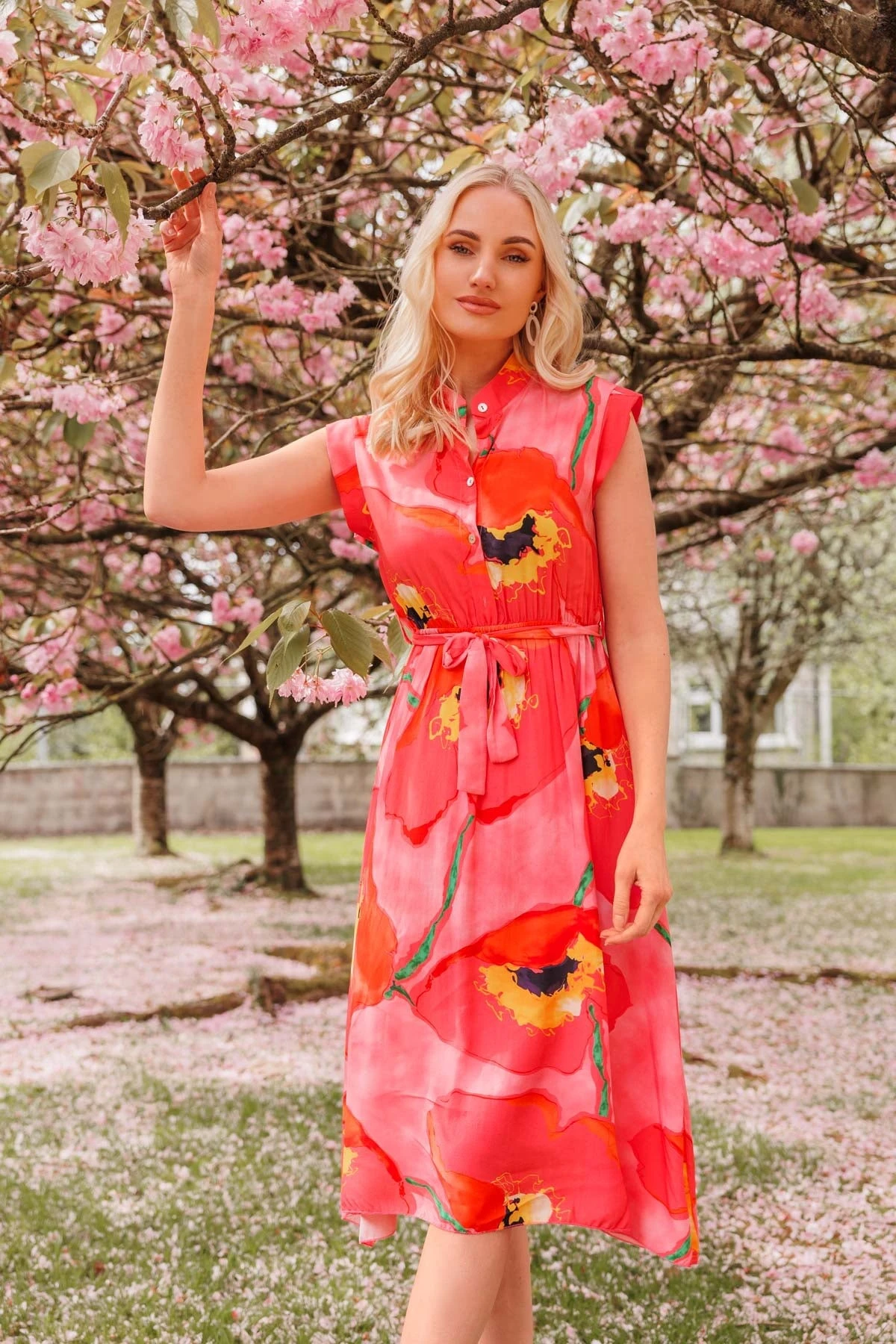 Floral poppy printed ruffle sleeve midi dress by Rowen Avenue.Â