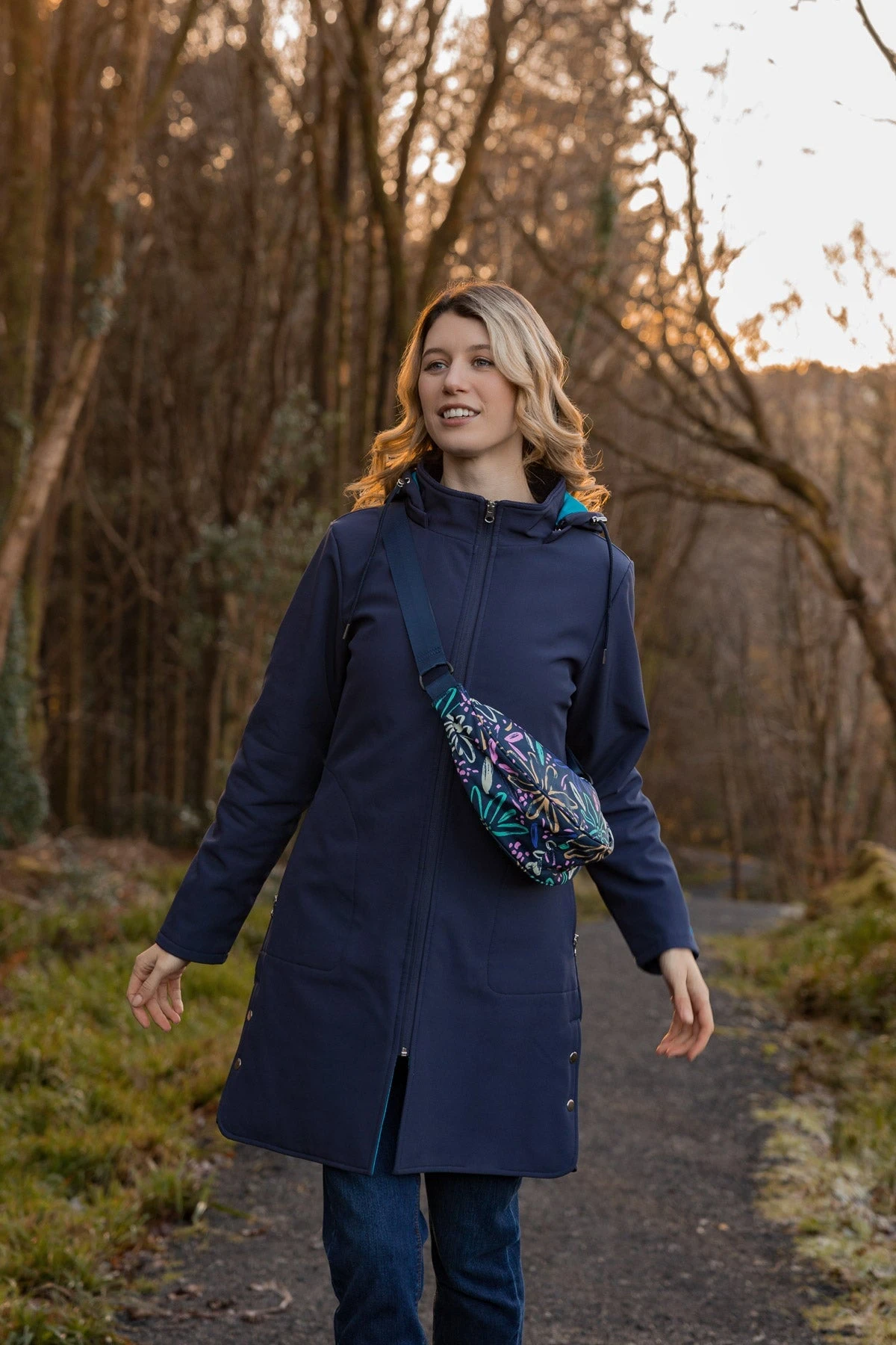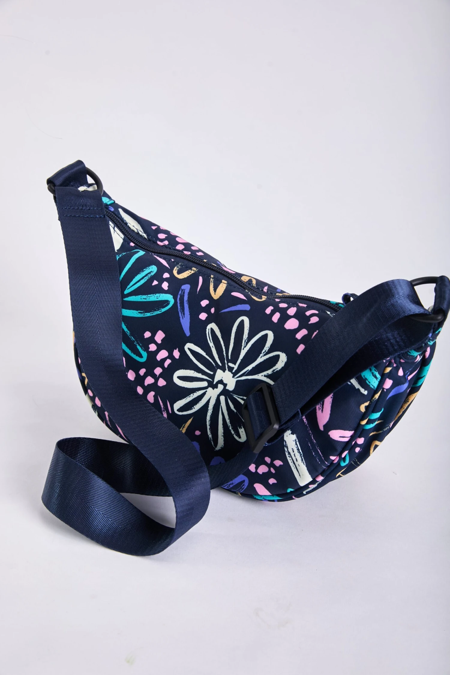Printed Crescent Shape Crossbody in Navy by Soul Accessories, exclusive to Carraig Donn.