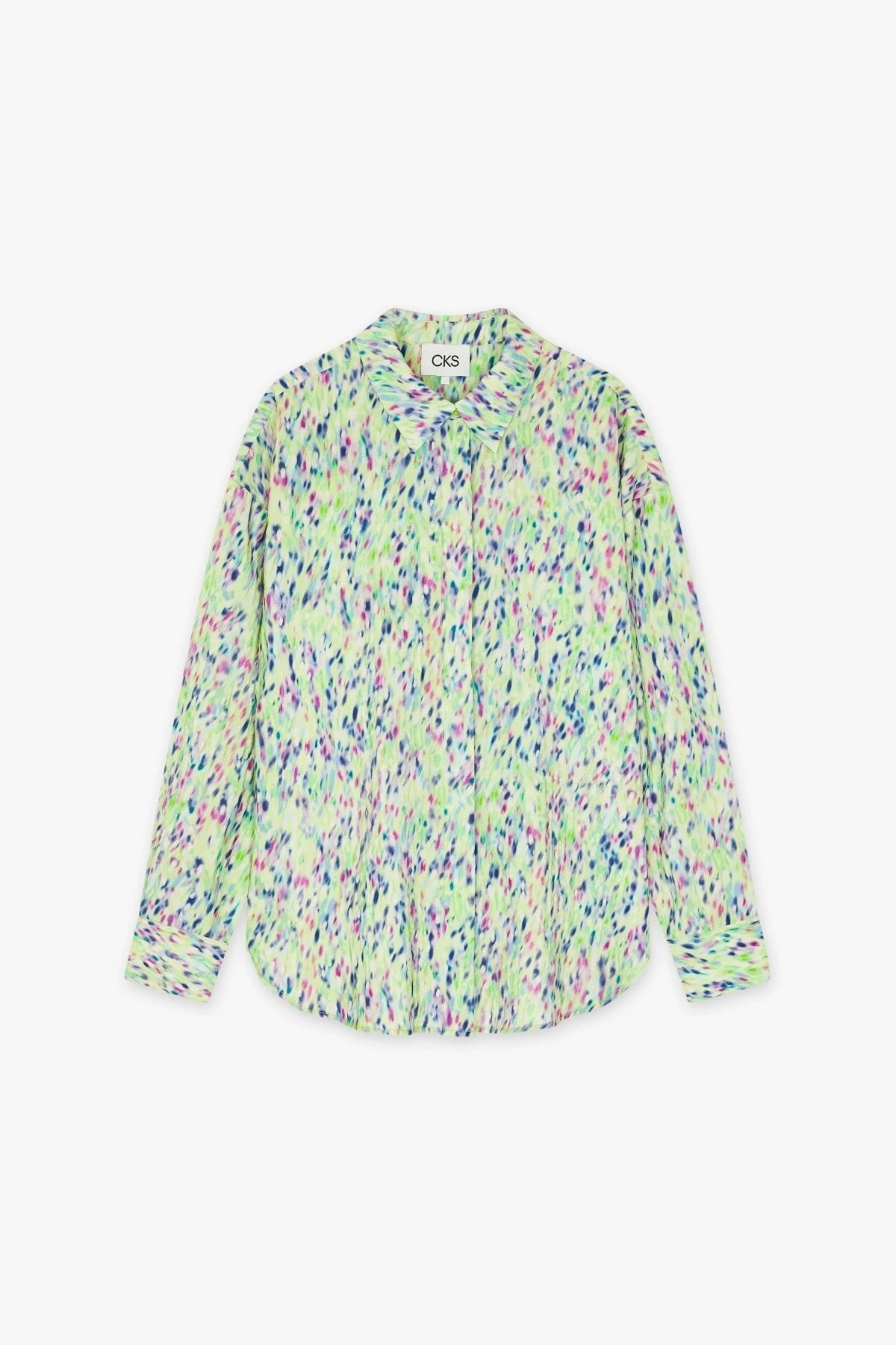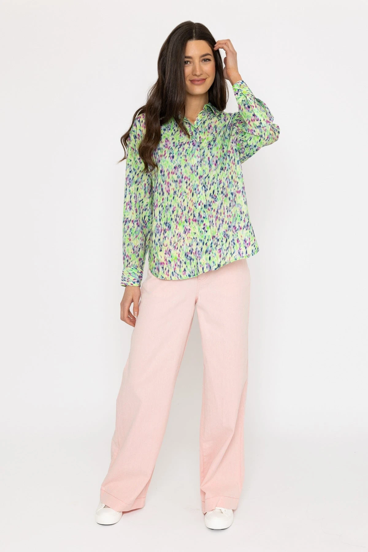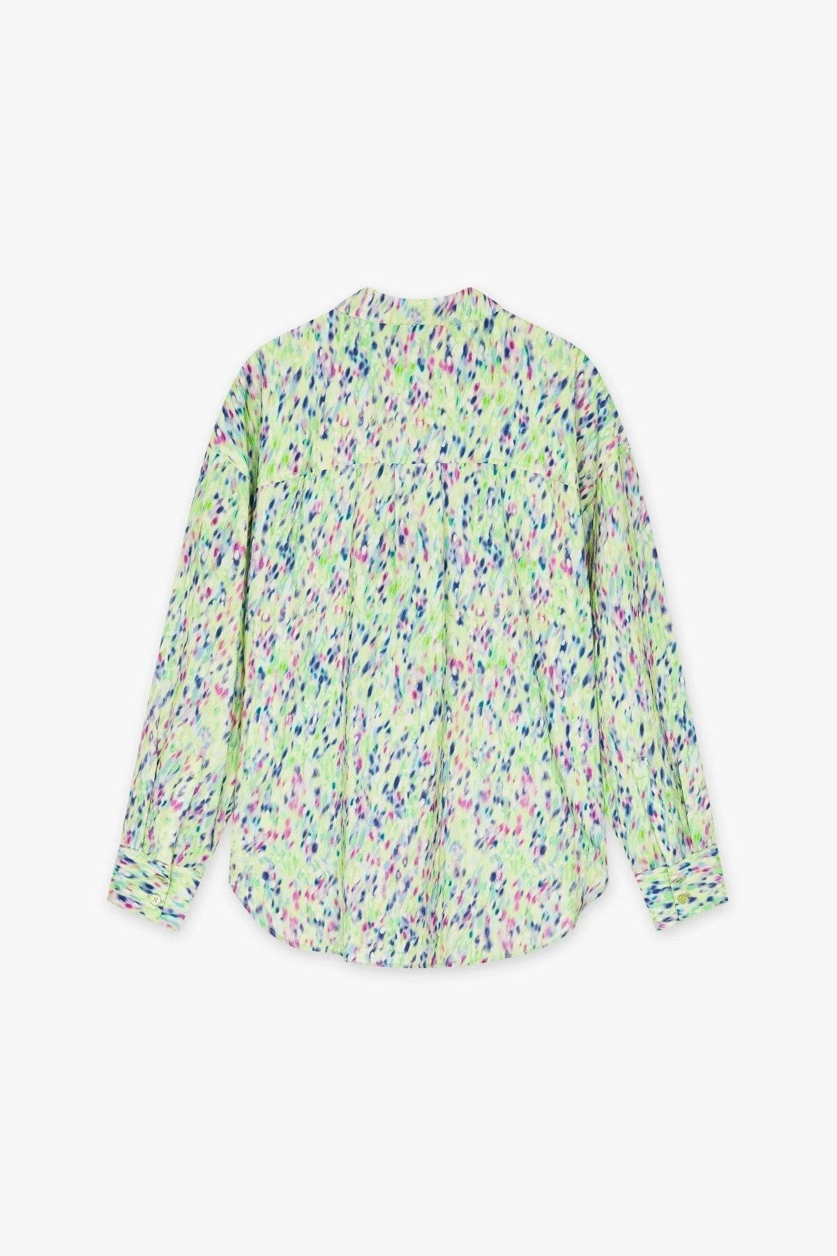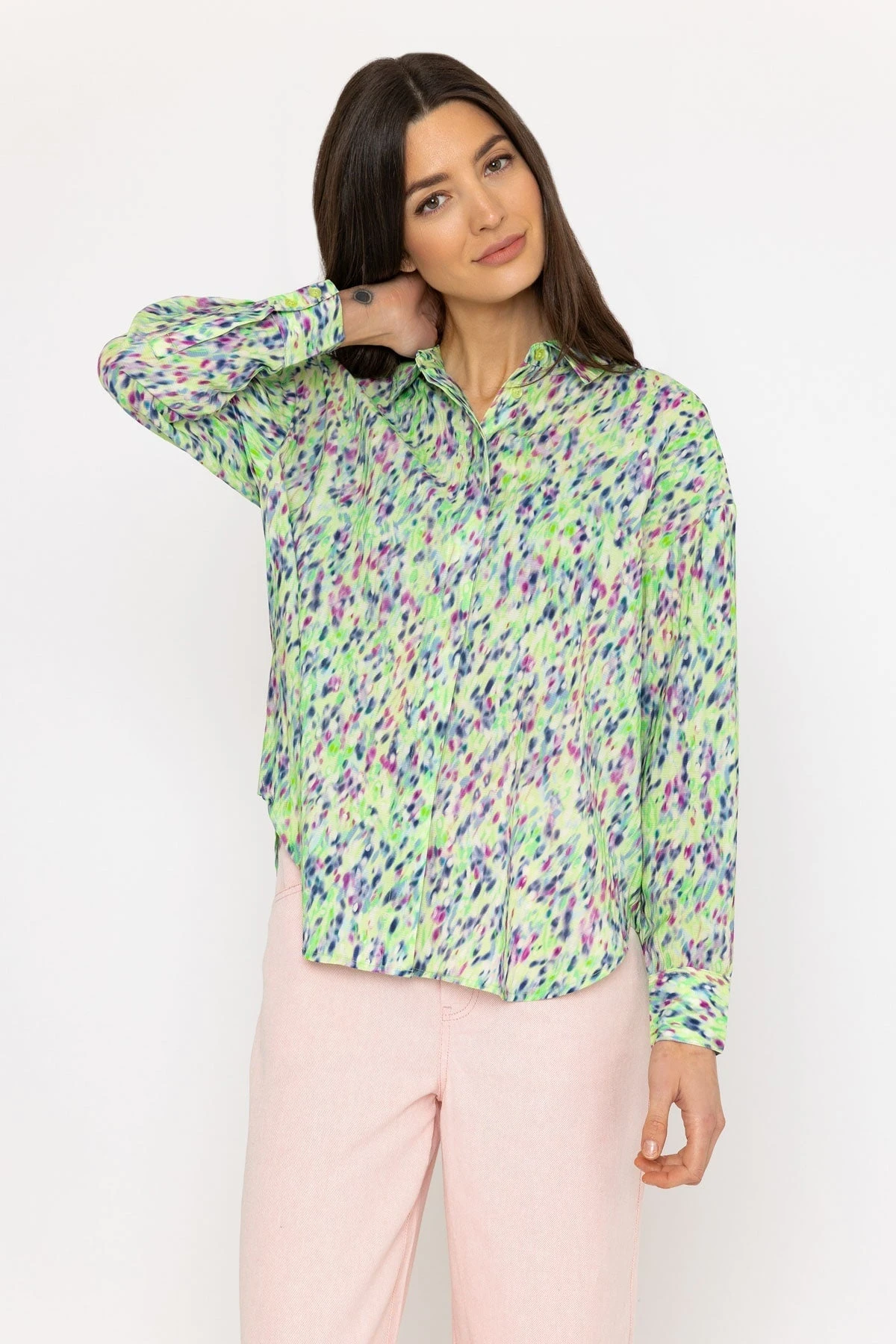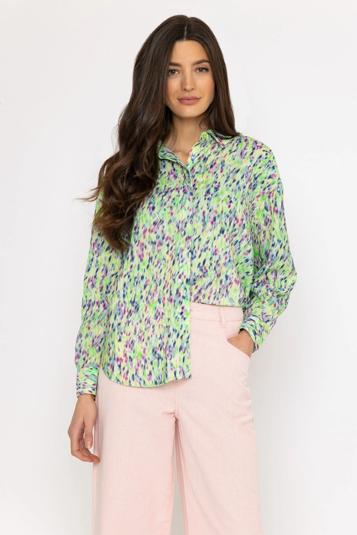 Ruttens Shirt in Green Print by CKS Fashion. Exclusive brand to Ireland & Carraig Donn! With loose sleeves and invisible buttons, this ladies green blouse is both elegant and comfortable. Pair it with jeans for a casual chic outfit or with a colorful skirt for a statement look.