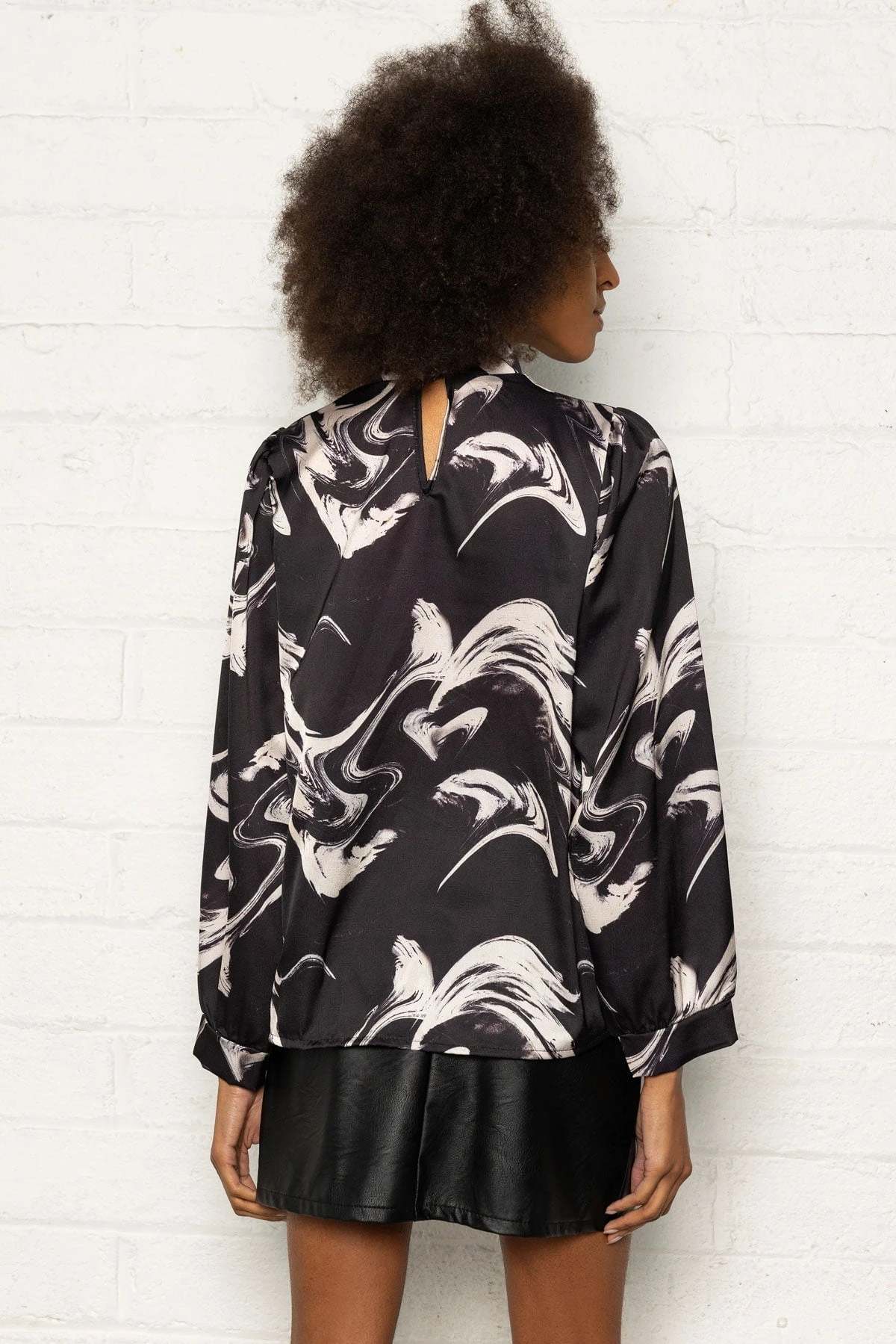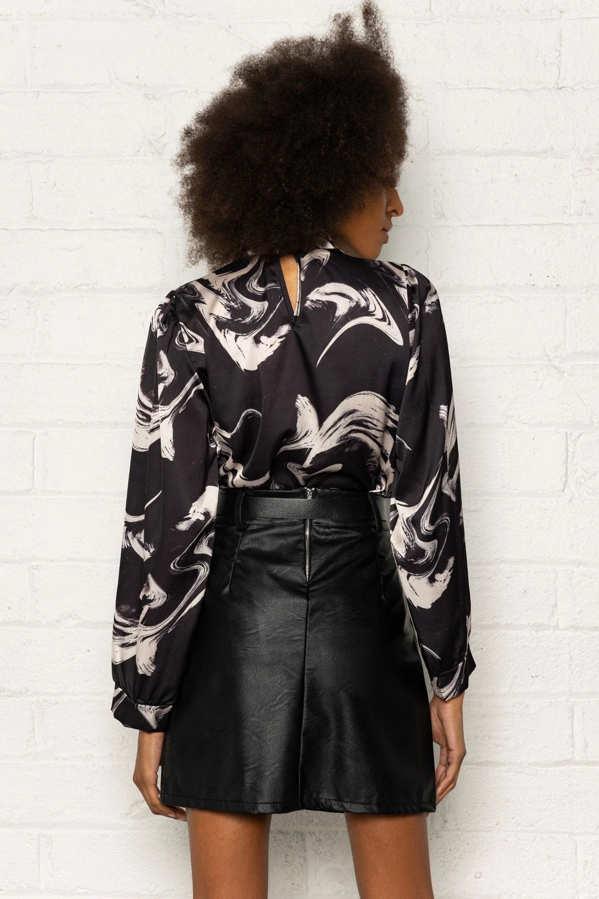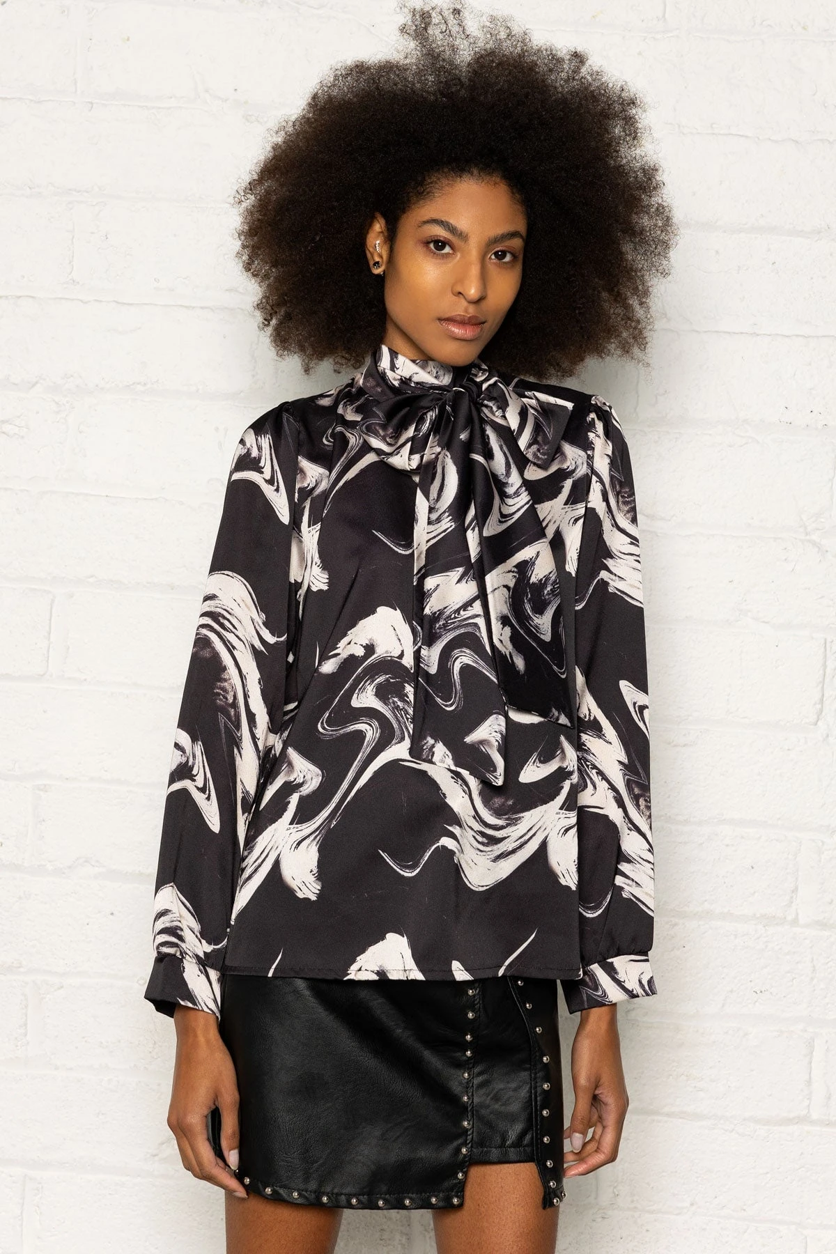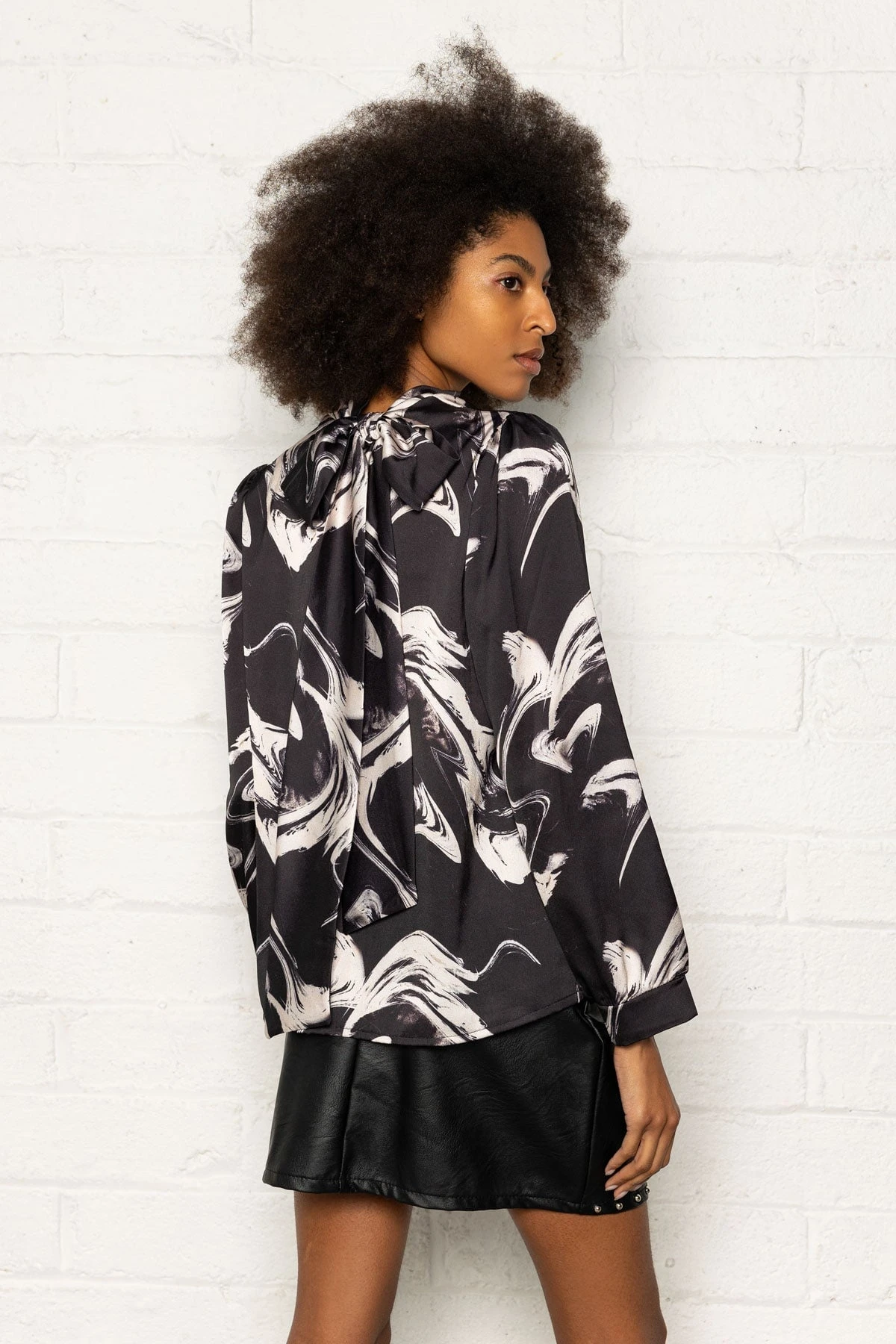 Sasha long sleeved pussy-bow blouse in black by Pala D’oro Sport. The versatility of this top allows you to effortlessly elevate any outfit, making you feel confident and chic.