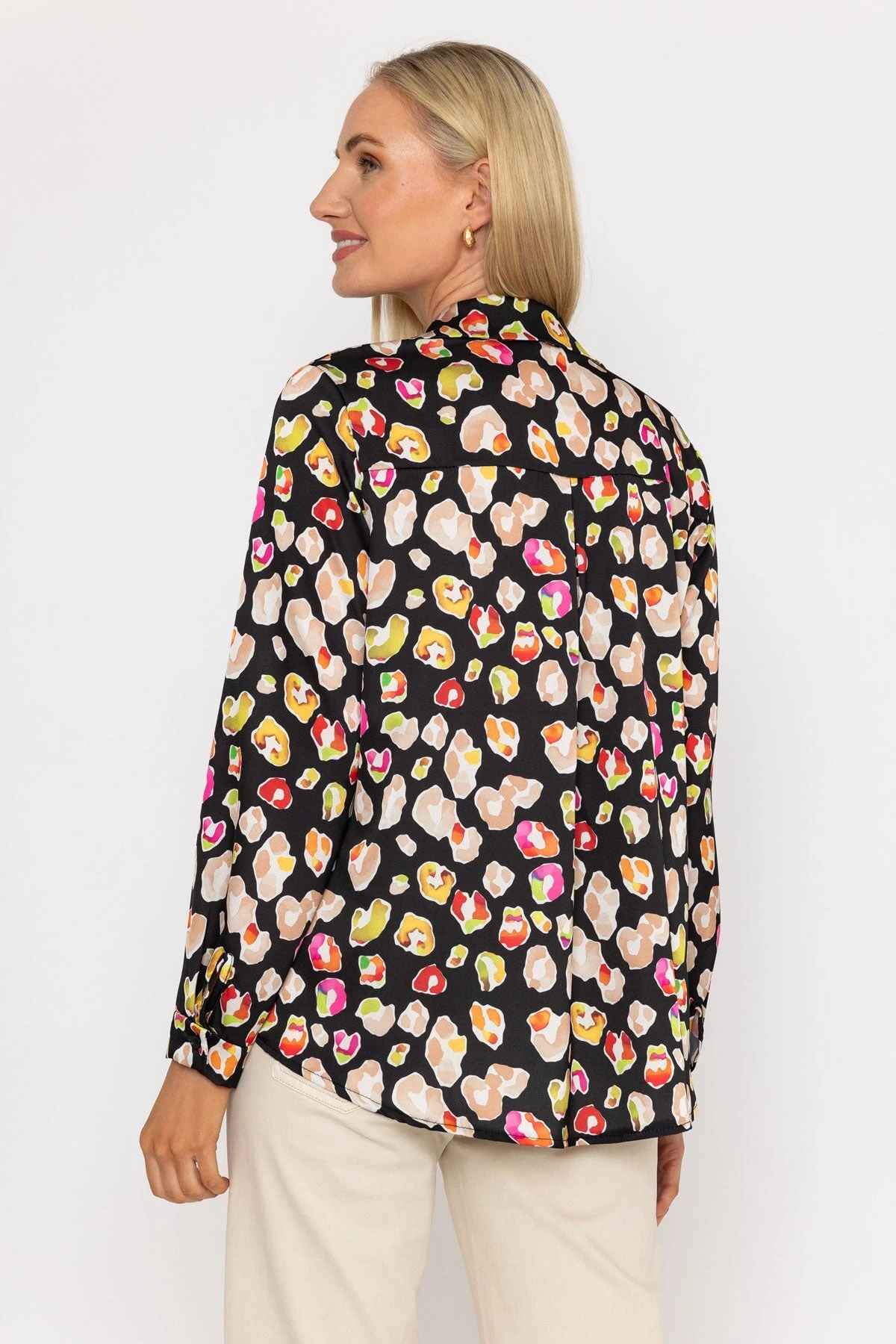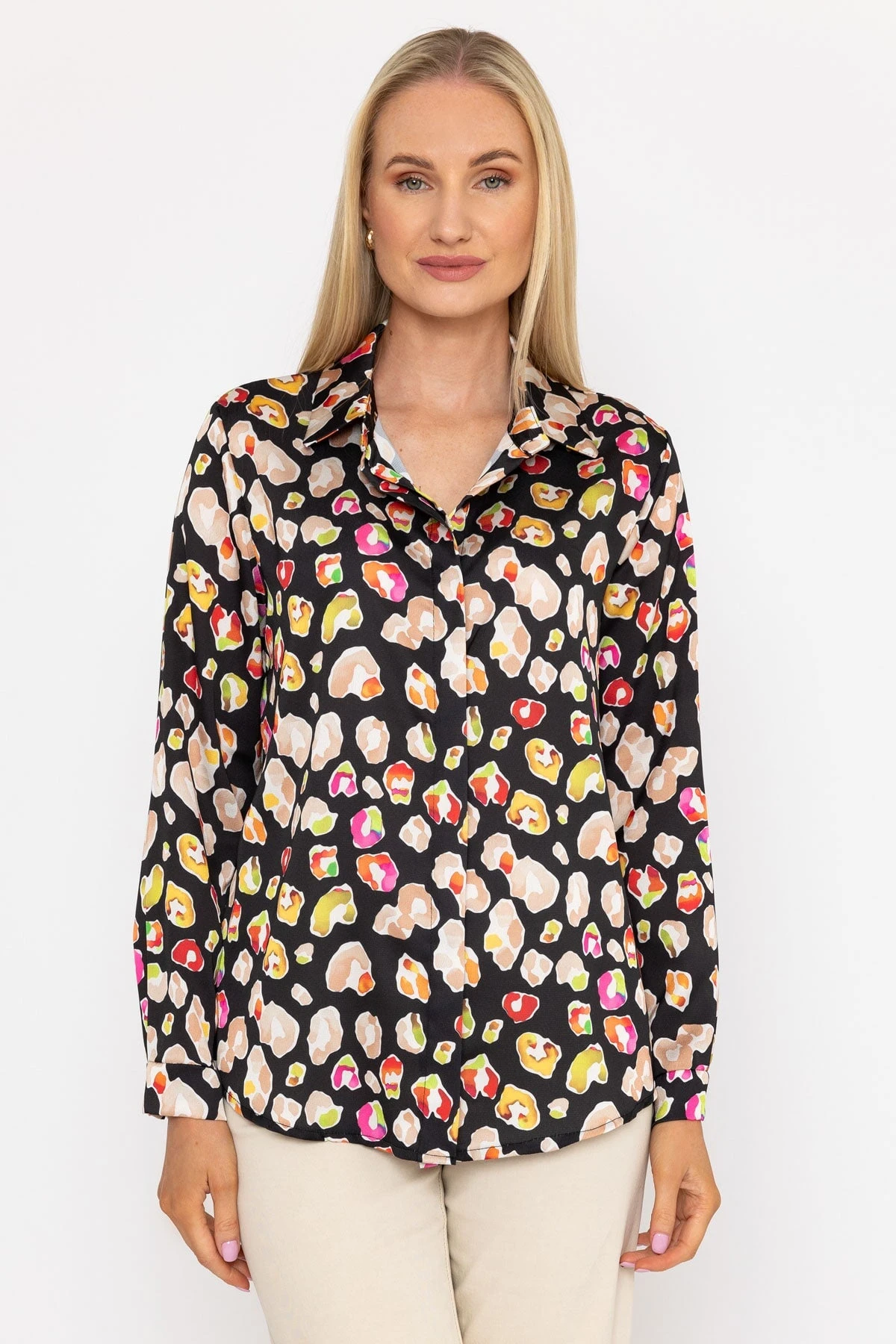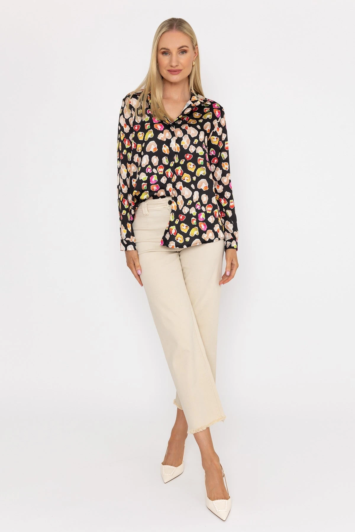 Bestseller sateen shirt in black print by Pala D’oro. This classic sateen shirt will add a unique touch to your wardrobe.