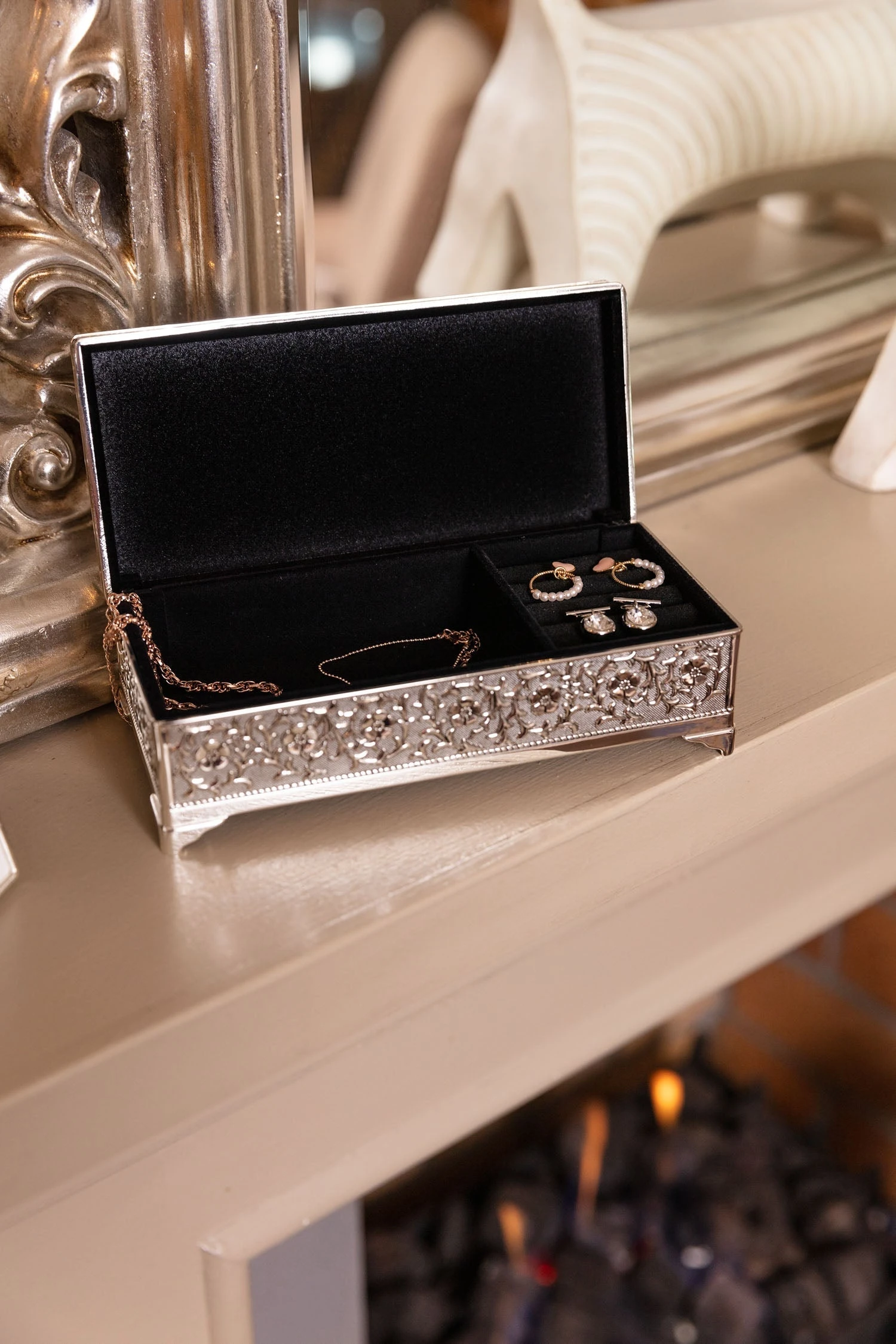 This beautiful antique-finish silver plated jewellery box will make a stunning addition to anyone’s dressing table. A truly thoughtful and surprising gift for her idea. Presented in a beautiful gift box .Â