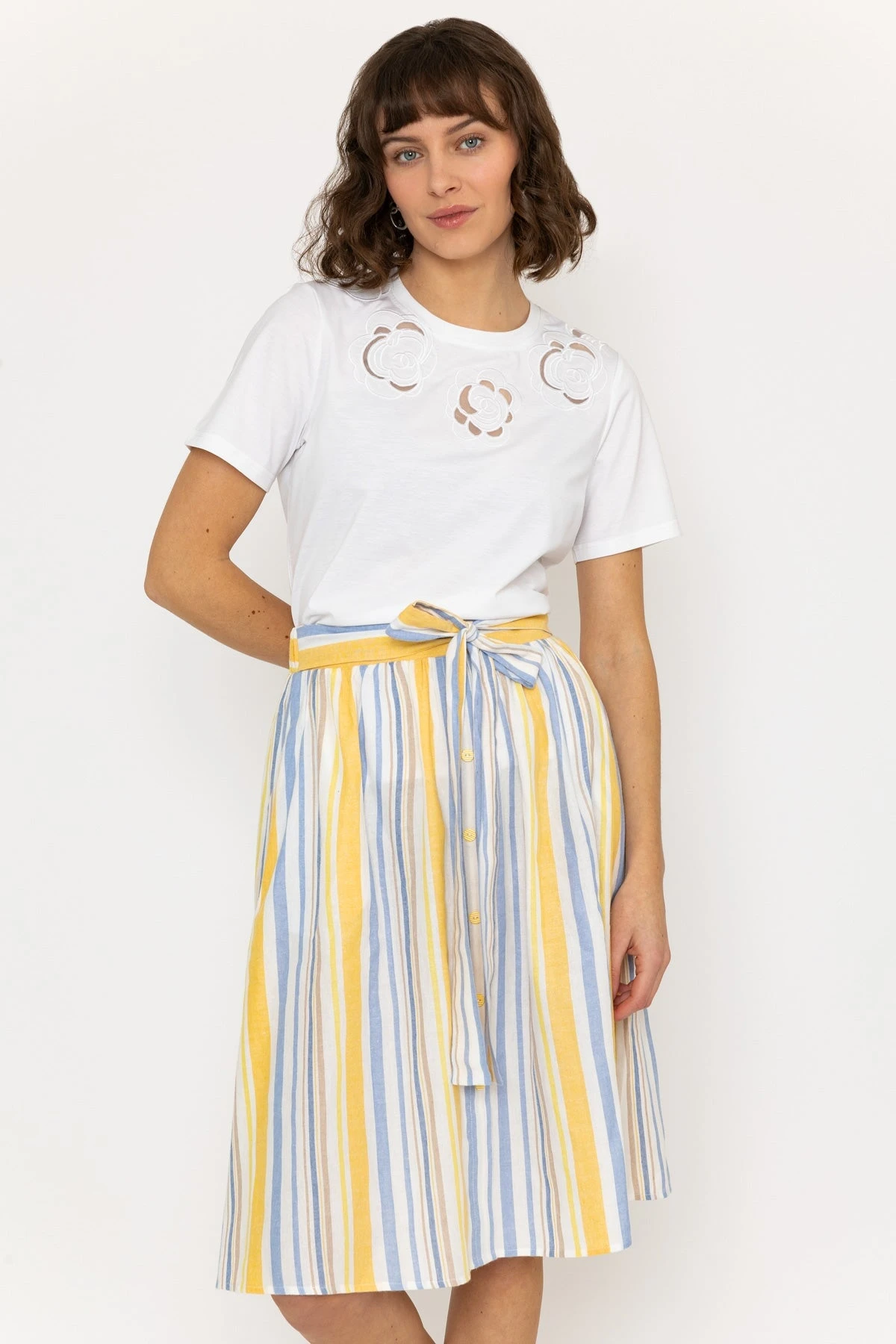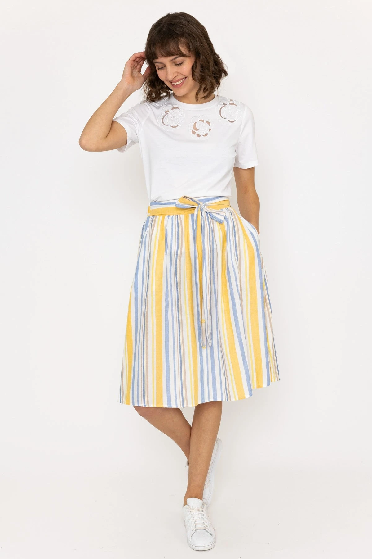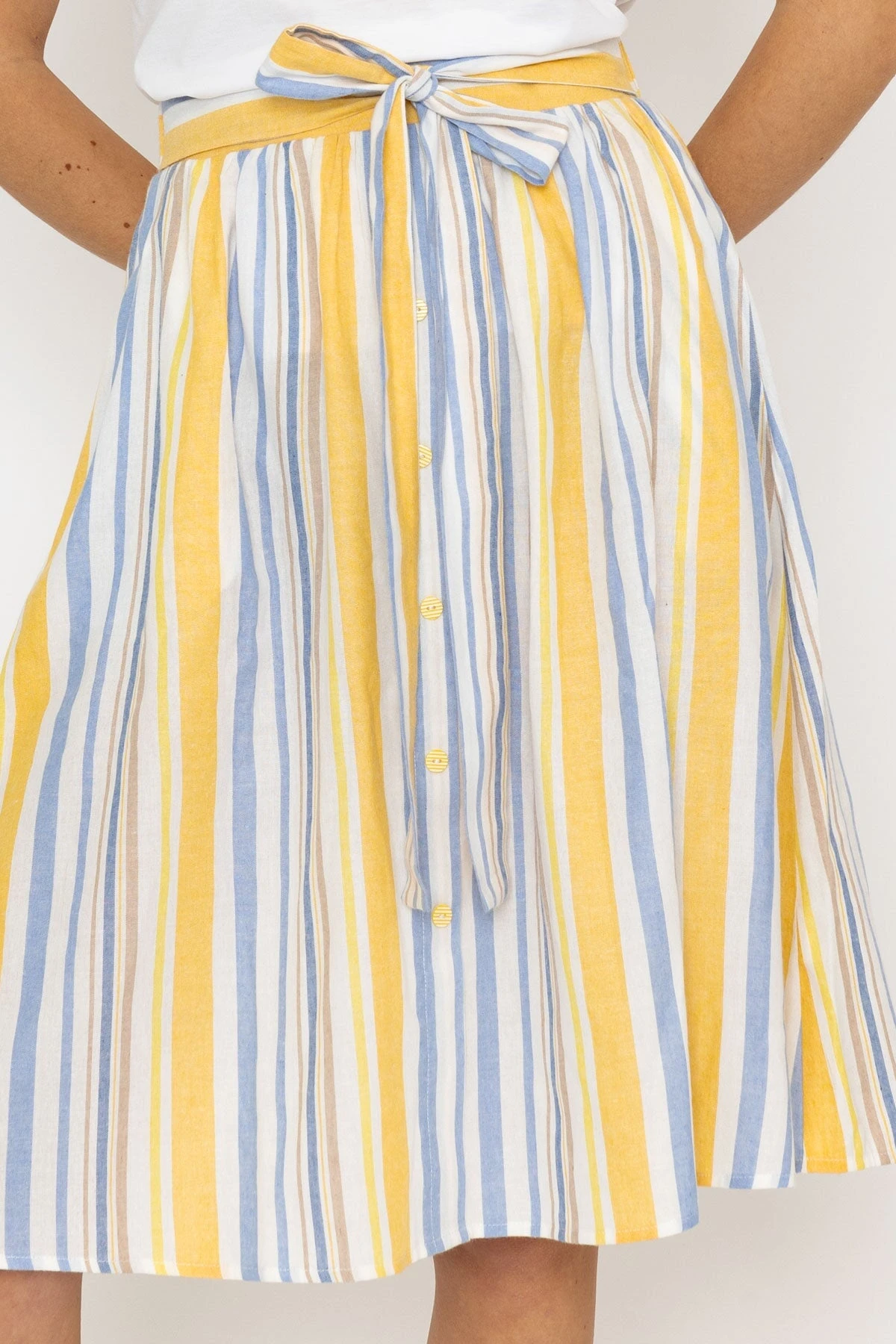 This stunning Stripe Midi Skirt is the perfect addition to your summer holiday wardrobe. This skirt will keep you cool and stylish on your next beach vacation.