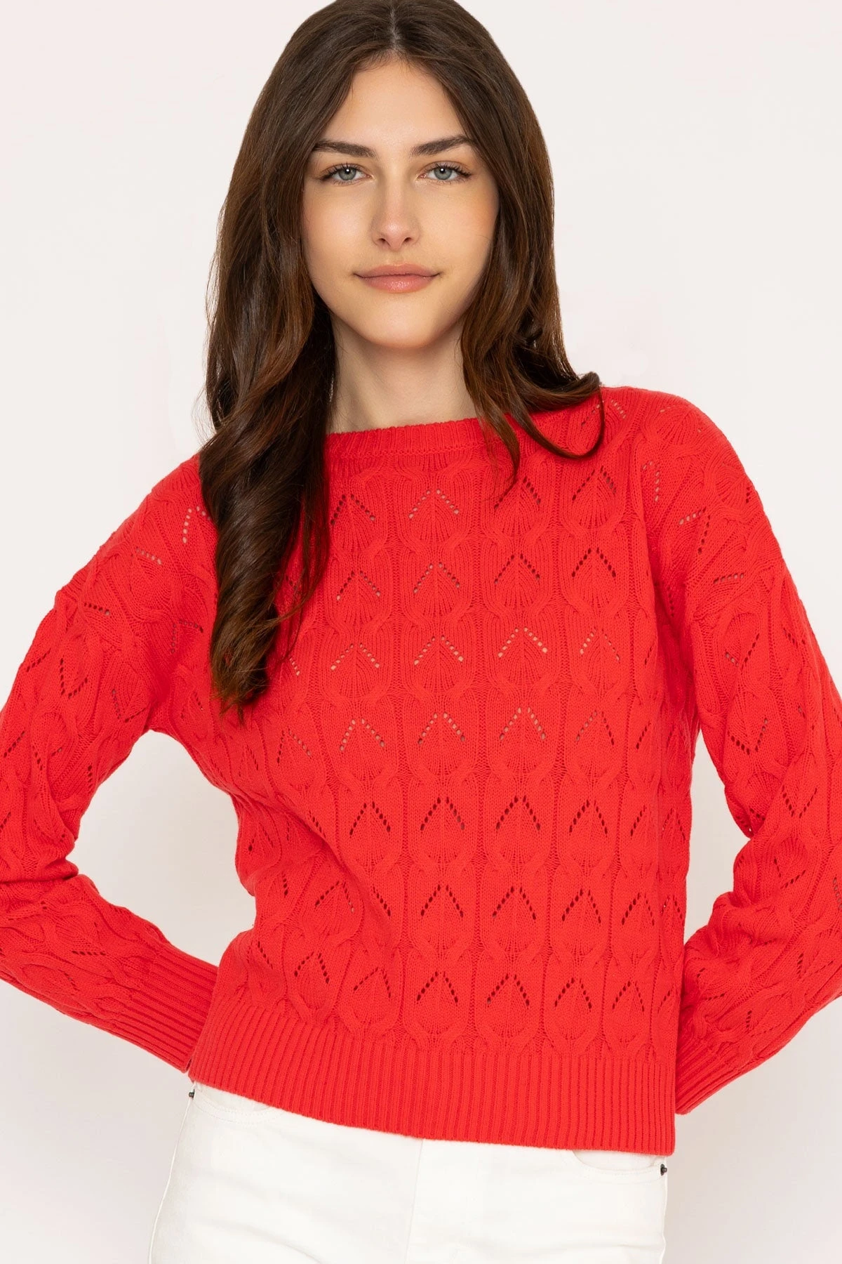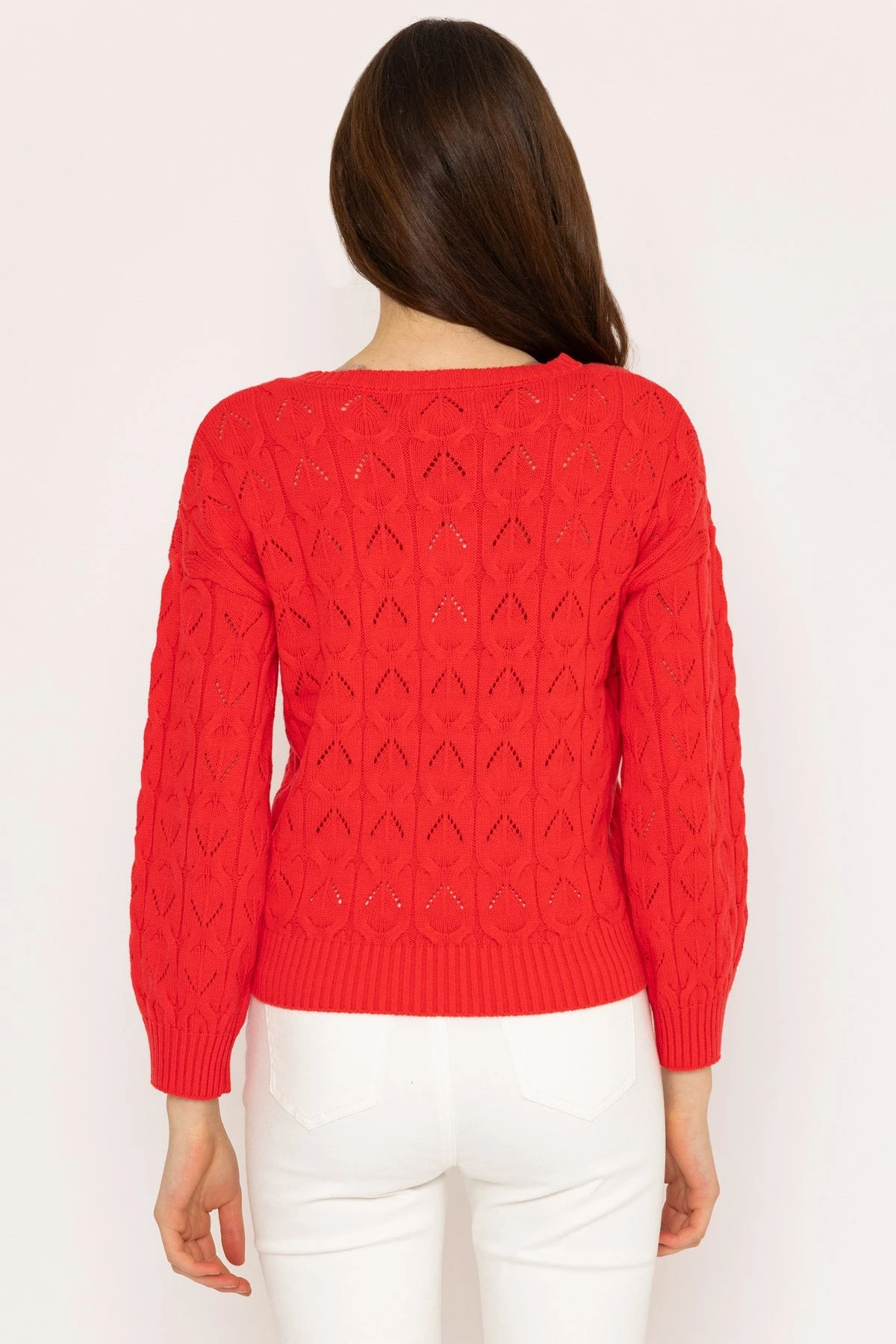 Textured crew neck in red by Kelly & Grace Weekend. Designed for easy styling and everyday comfort.