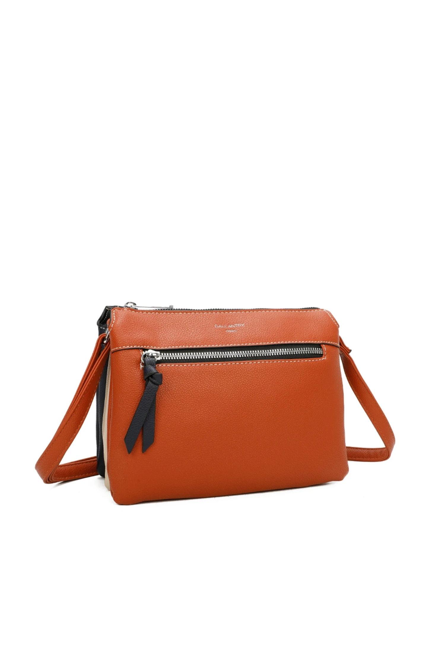 Triple Compartment Crossbody in Orange, Navy and Cream by Gallantry.
