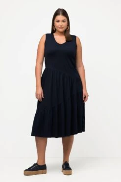 Navy sleeveless eco cotton midi dress by Ulla Popken.
