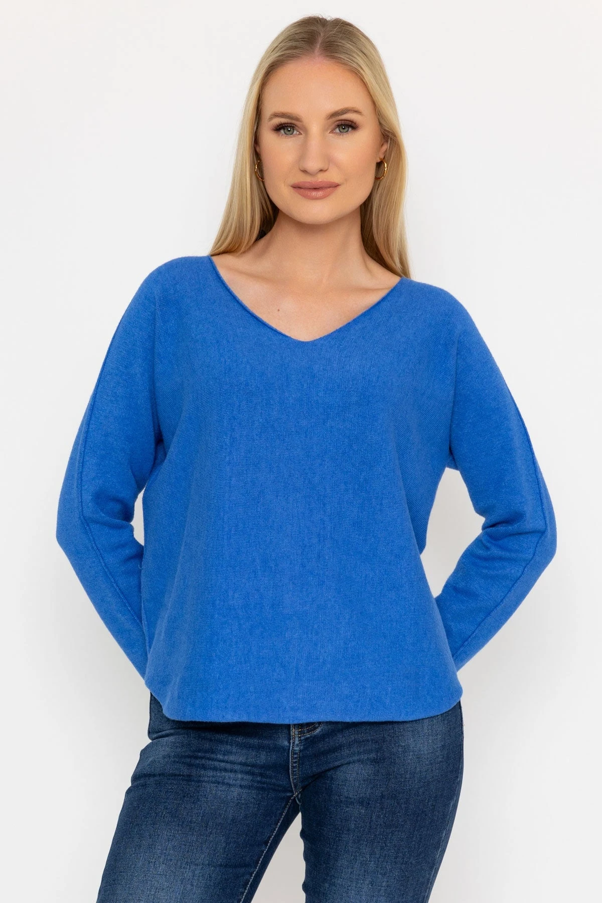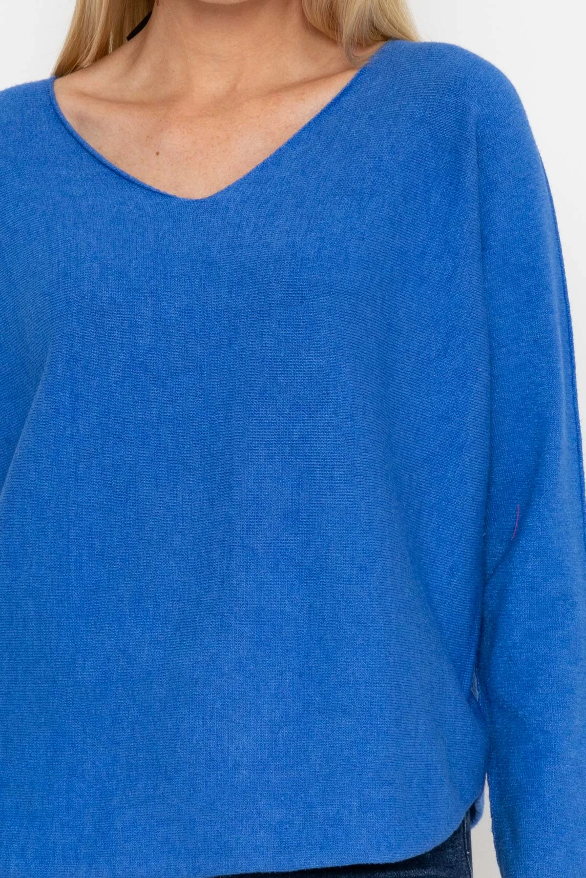 V-neck jumper in blue by Pala D’oro. Made for everyday wear. Super soft! Comfortable and easy to wear.